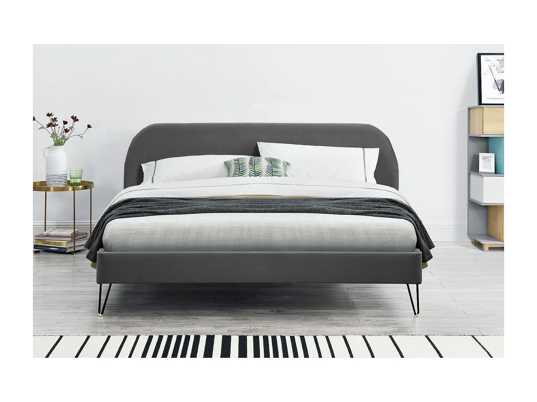 Structure de lit 160 x 200 cm en velours gris et pieds noirs PHOENIX