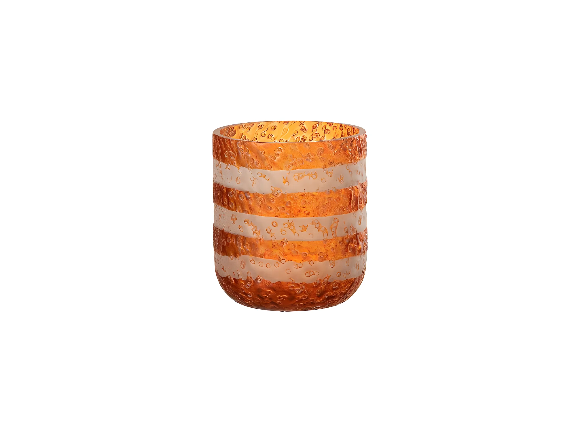 Photophore à lignes en verre orange 9x9x10 cm