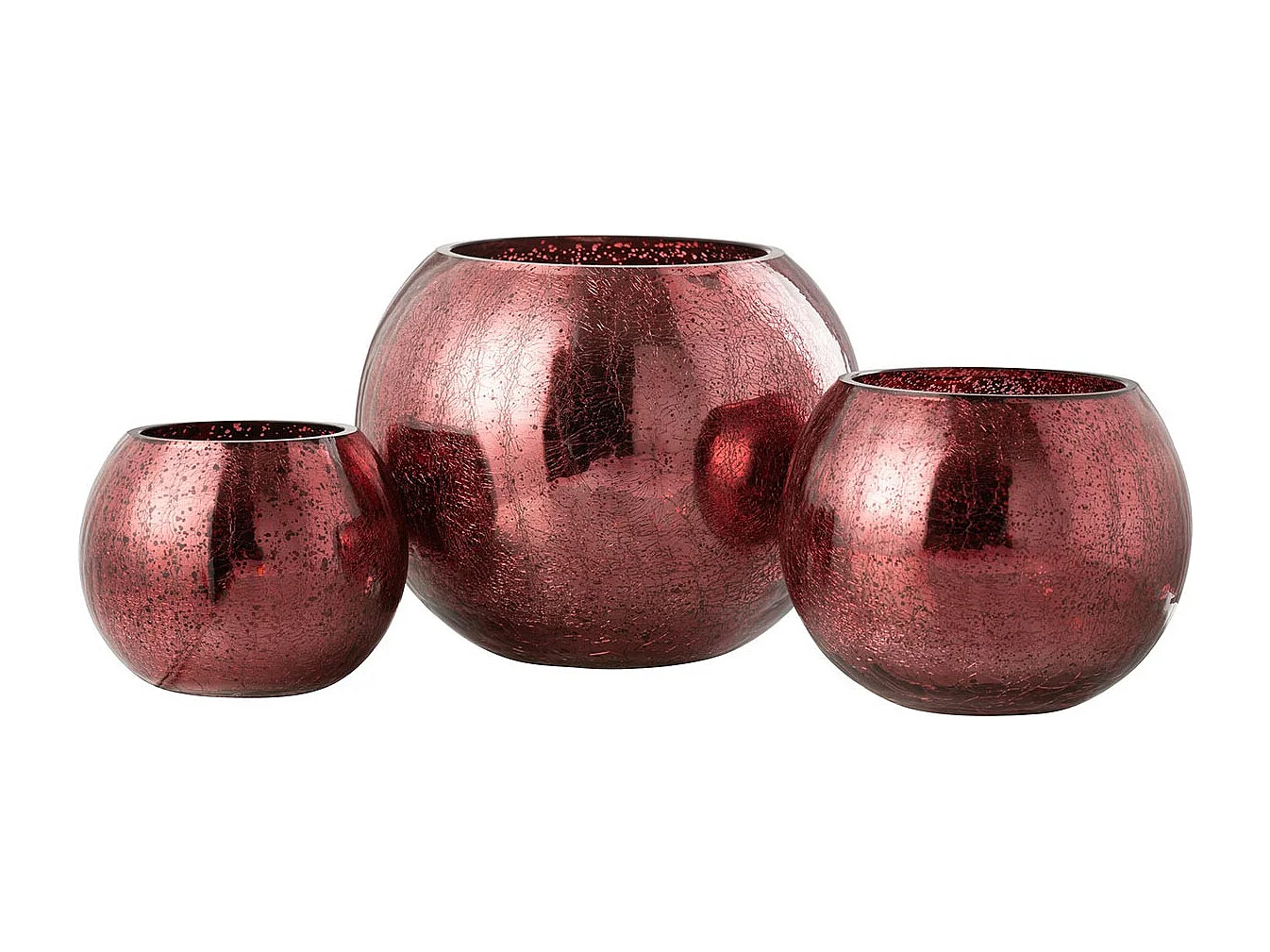 Photophore Boule en Verre "Craquelée" 20cm Rose