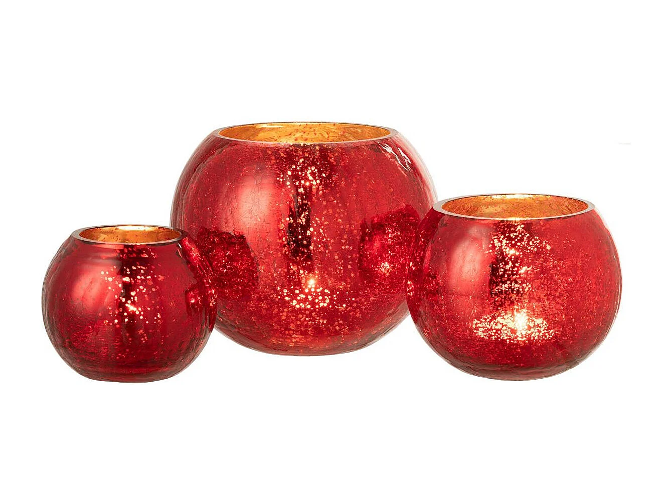 Photophore en Verre "Boule Craquelée" 20cm Rouge