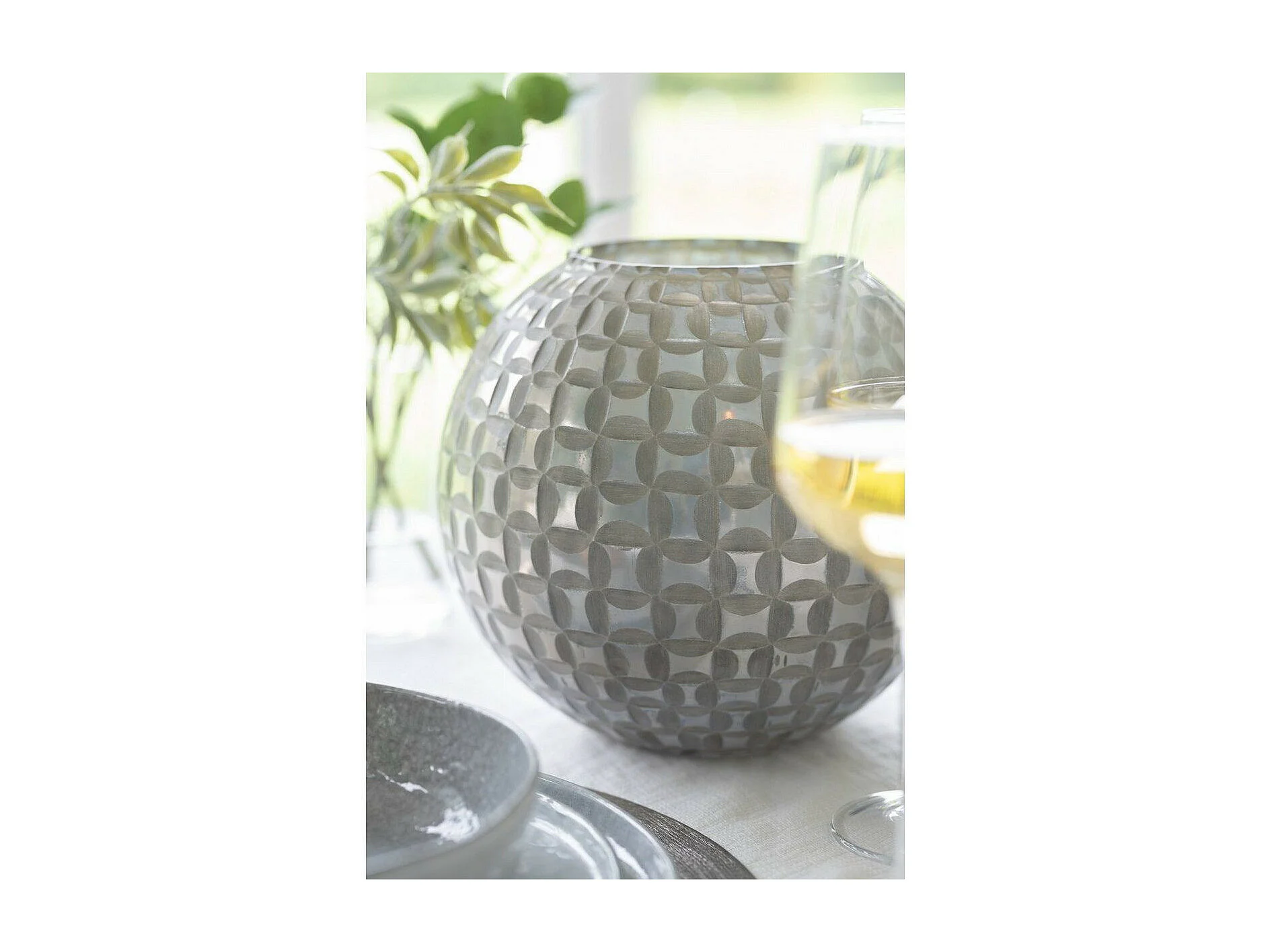 Photophore Déco en Verre "Alara" 29cm Gris