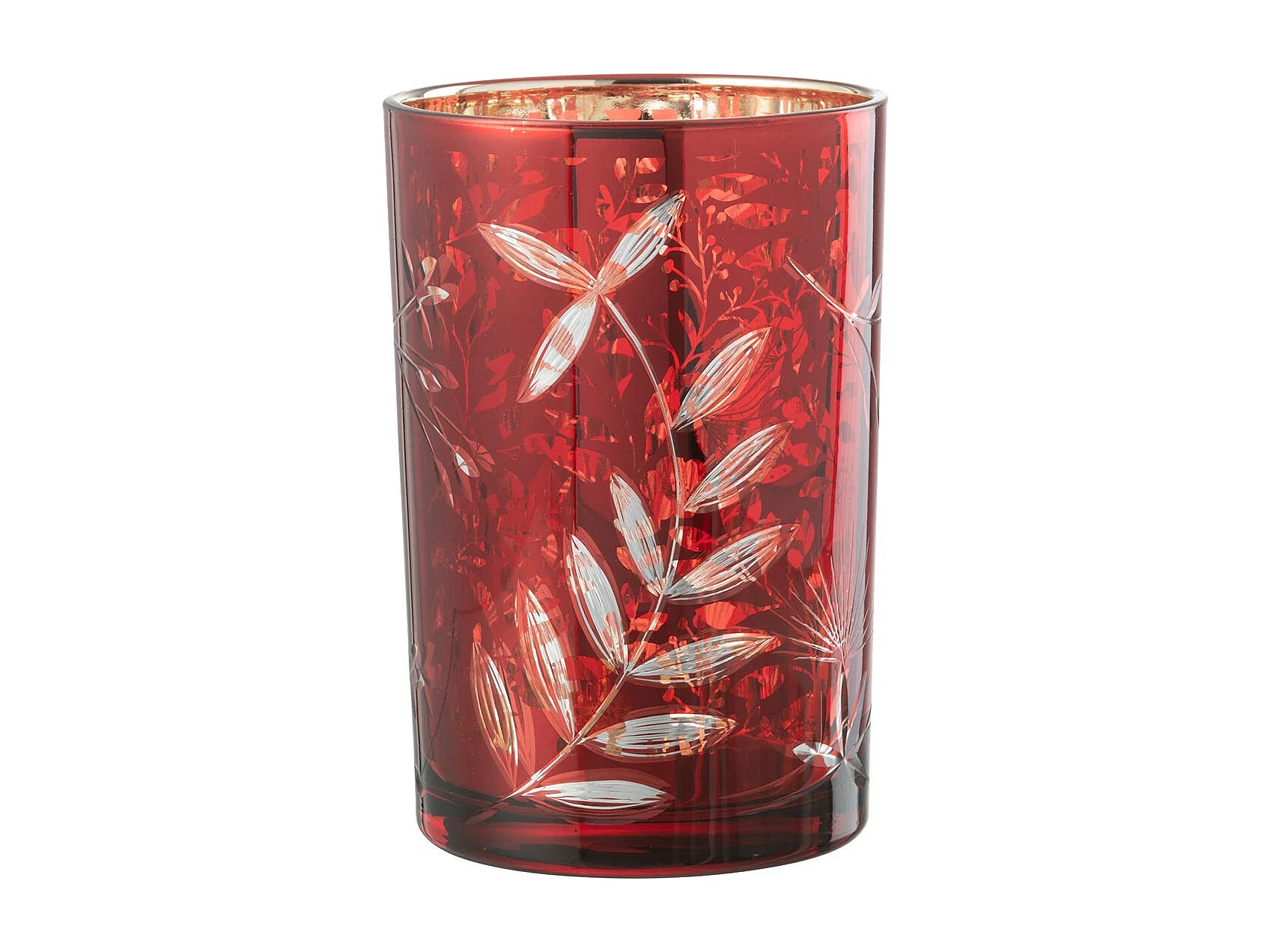 Photophore Déco en Verre "Feuilles" 18cm Rouge
