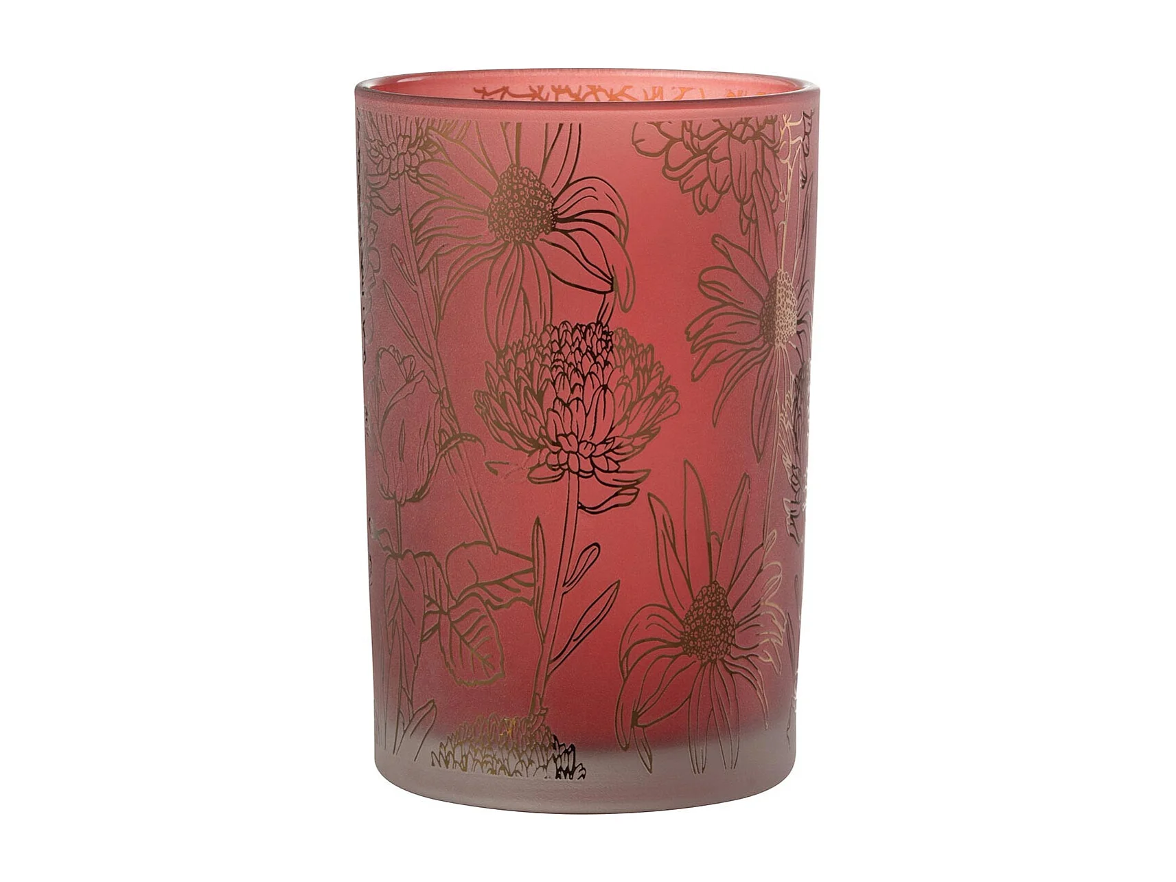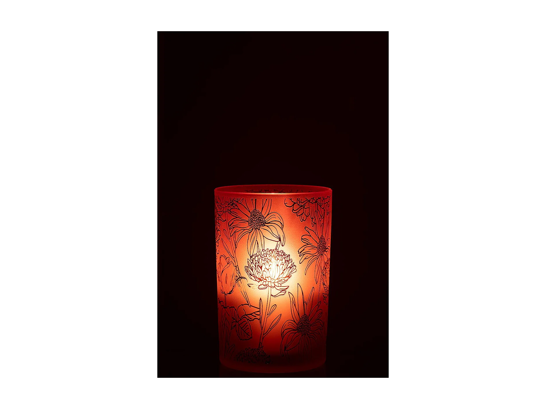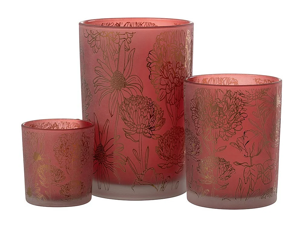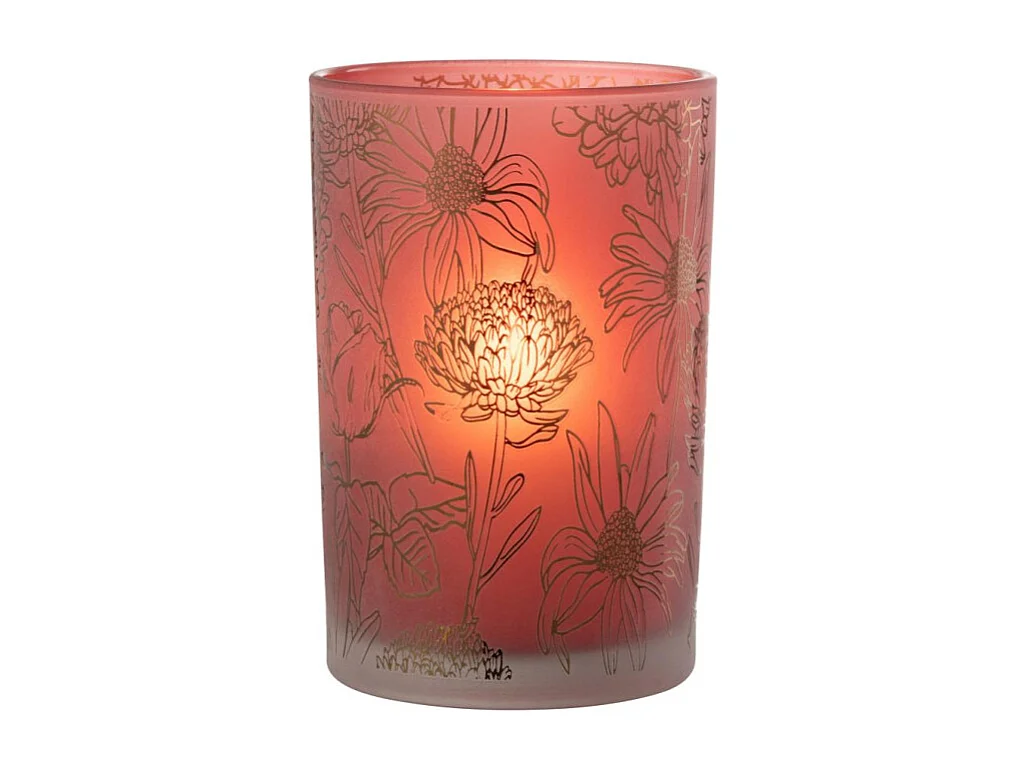 Photophore Déco en Verre Mat "Fleurs" 18cm Rouge