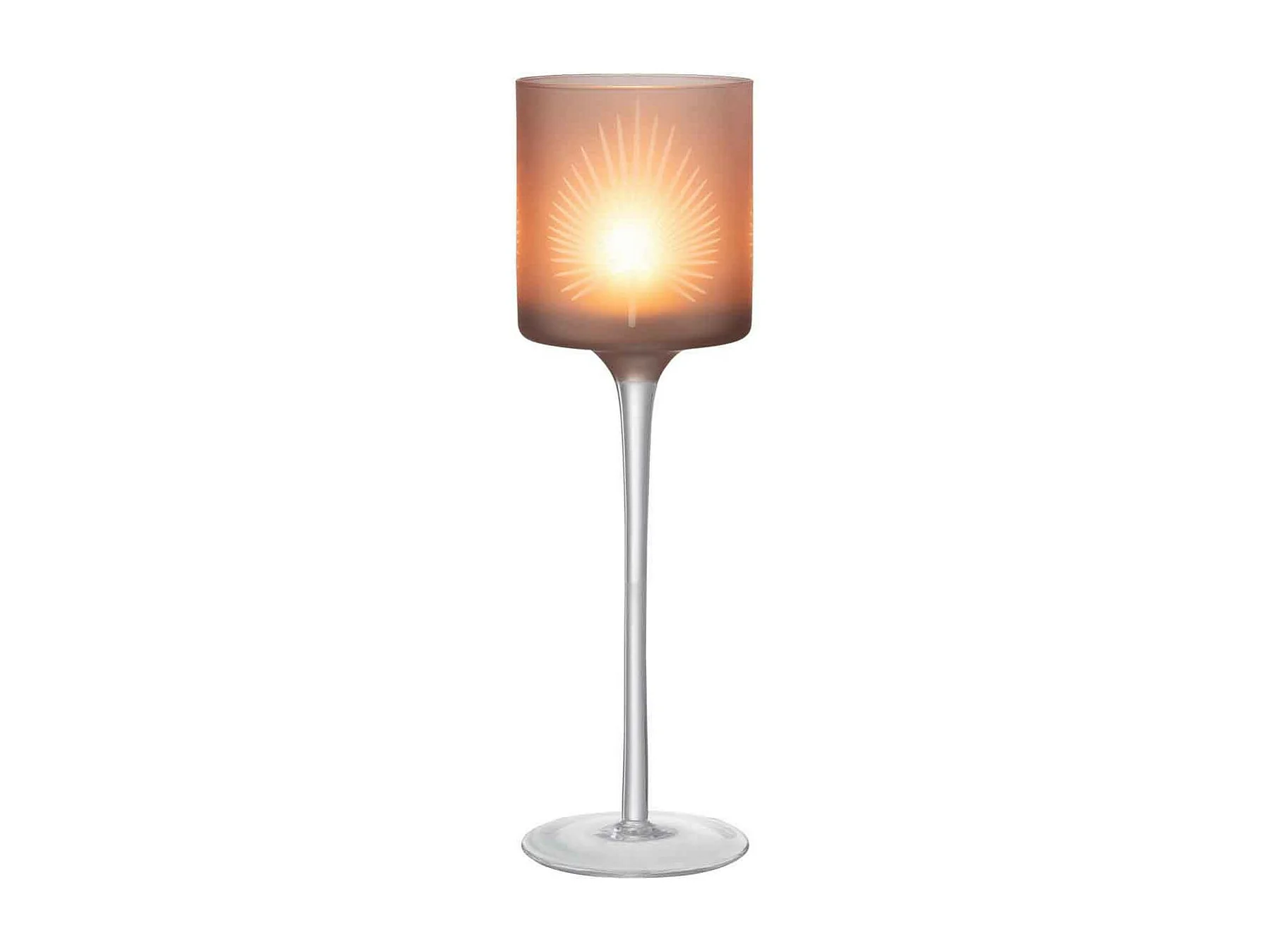 Lot de 2 Photophores sur Pied "Verre Rayé" 30cm Marron