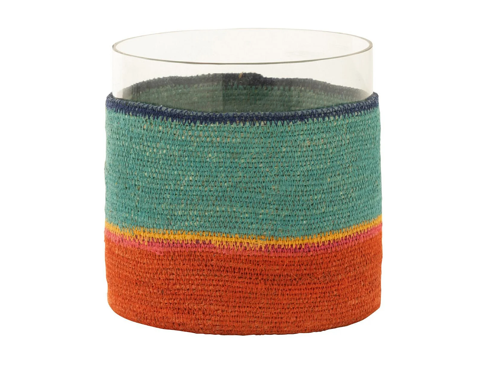 Photophore Déco Jonc de Mer "Desire" 20cm Turquoise & Orange