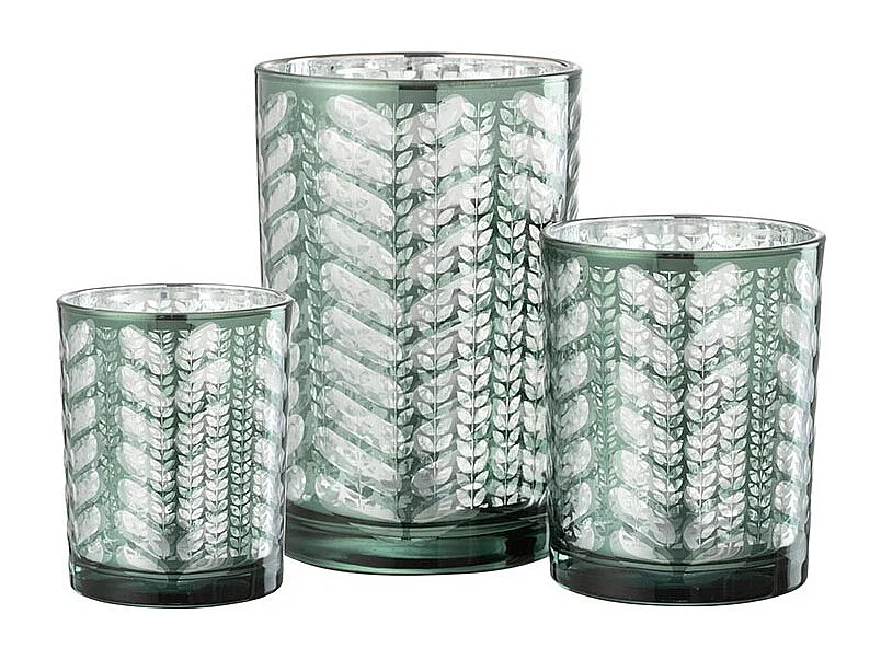 Photophore Déco en Verre "Feuilles" 18cm Vert