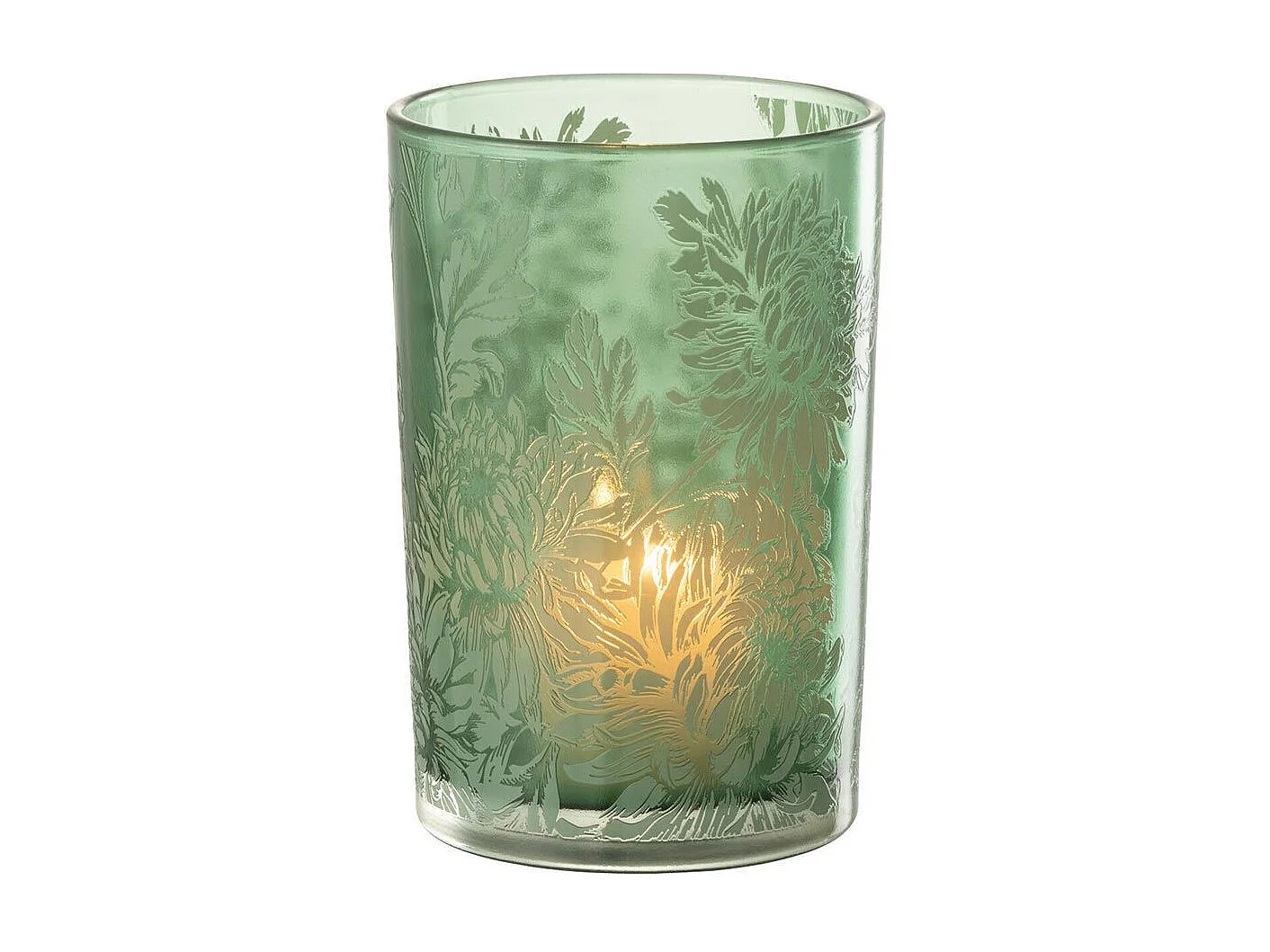Photophore Design en Verre "Fleurs" 24cm Vert