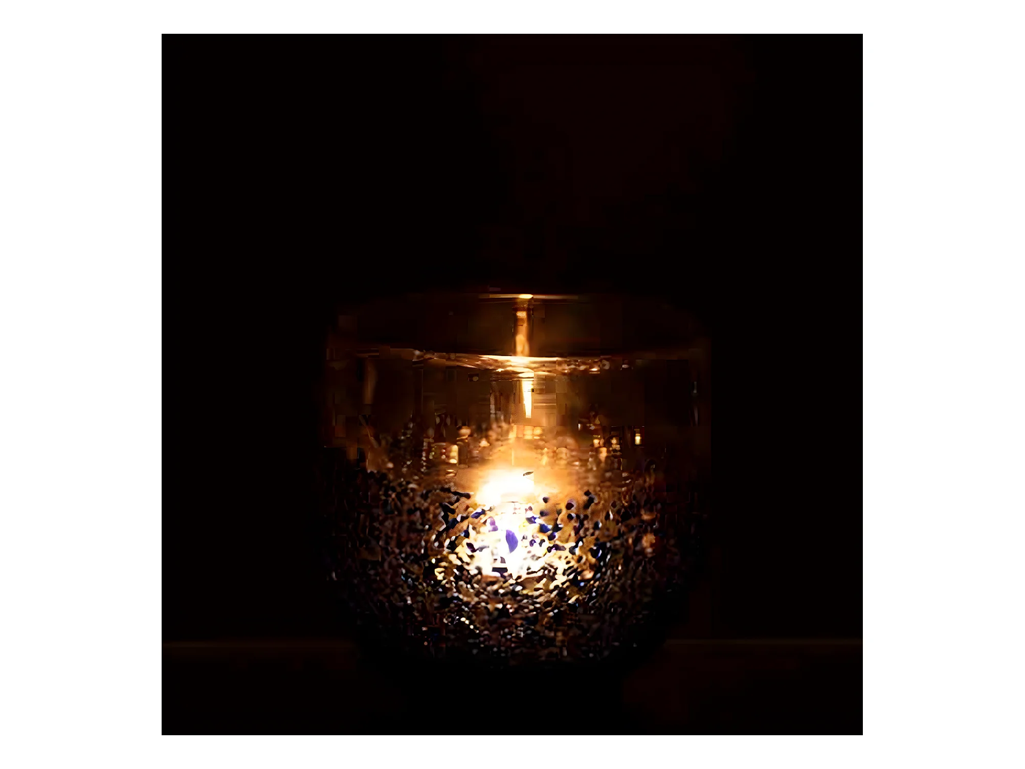 Photophore Design "Mosaïque" 16cm Bleu Azur