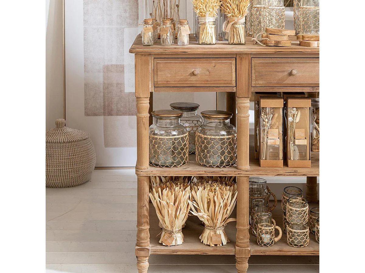 Photophore en Verre "Raffia" 26cm Transparent