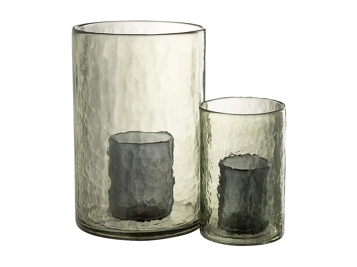 Photophore Double en Verre "Hurricane" 30cm Vert