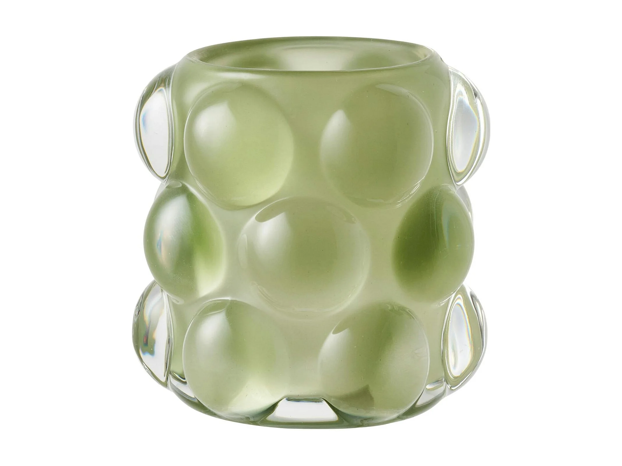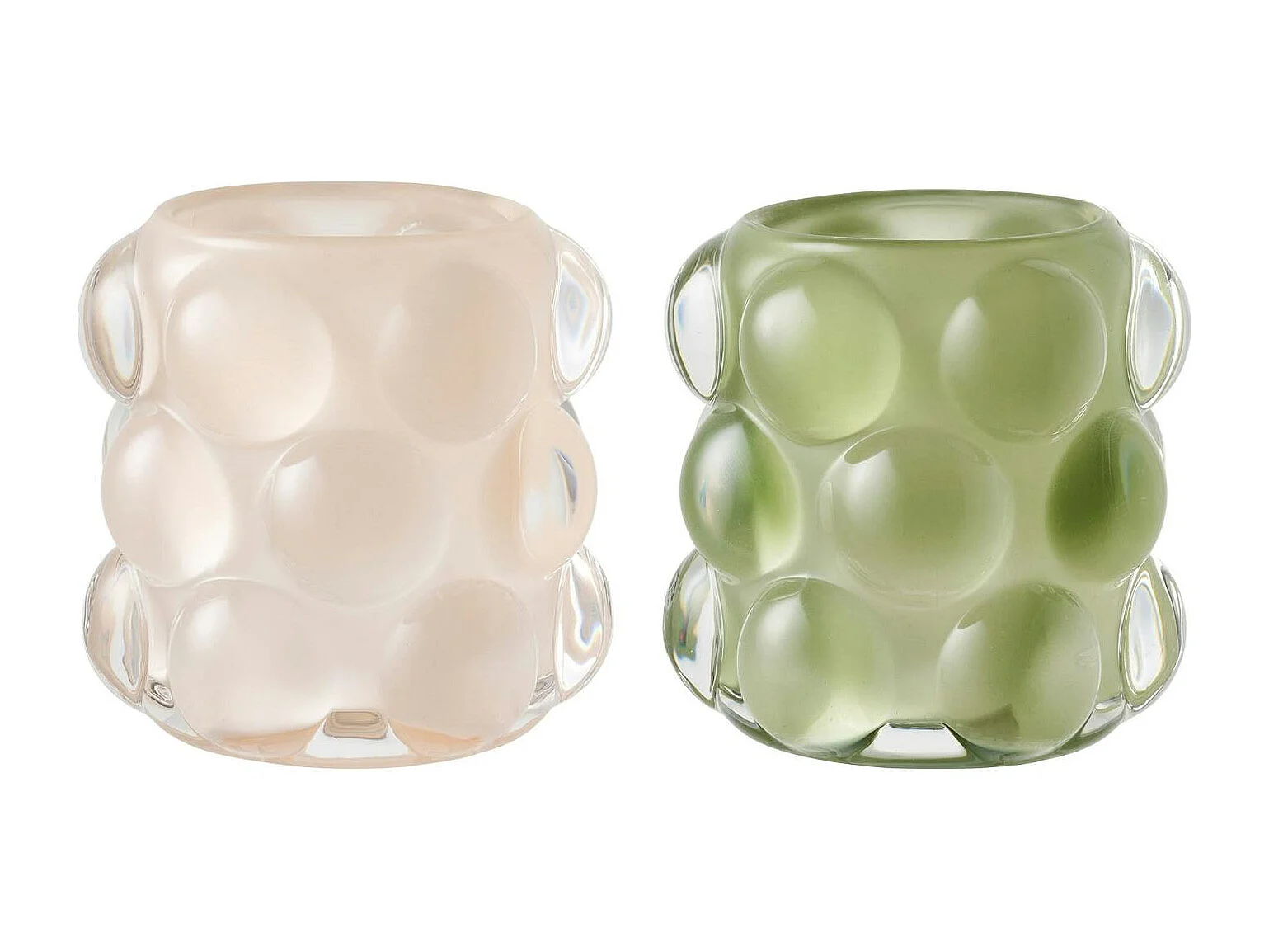Photophore en verre à gros pois (1 vert, 1 beige)
