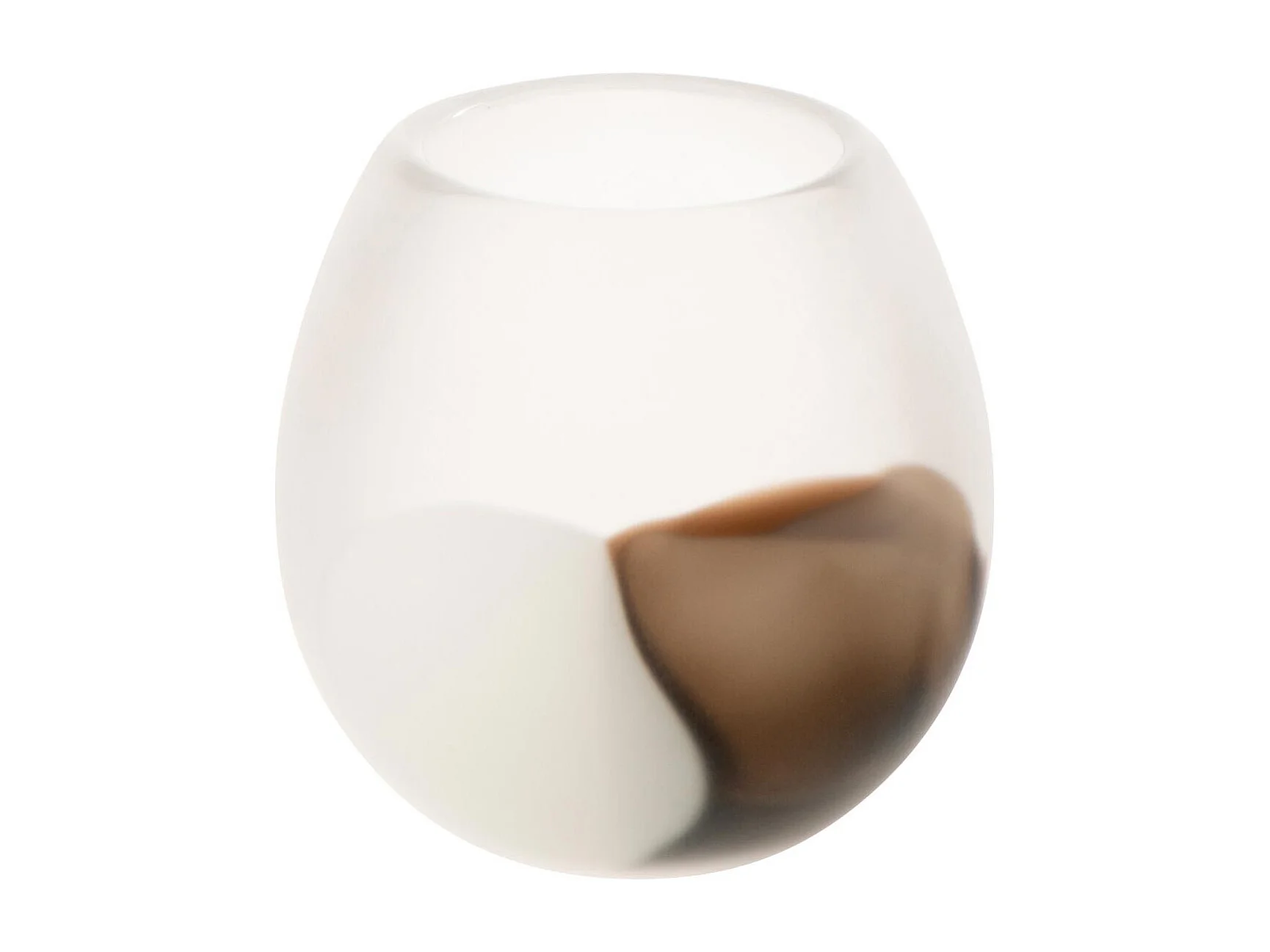 Photophore en Verre "Amos" 14cm Blanc & Marron