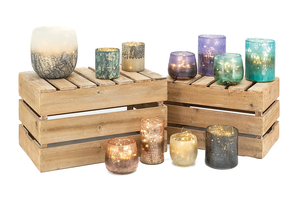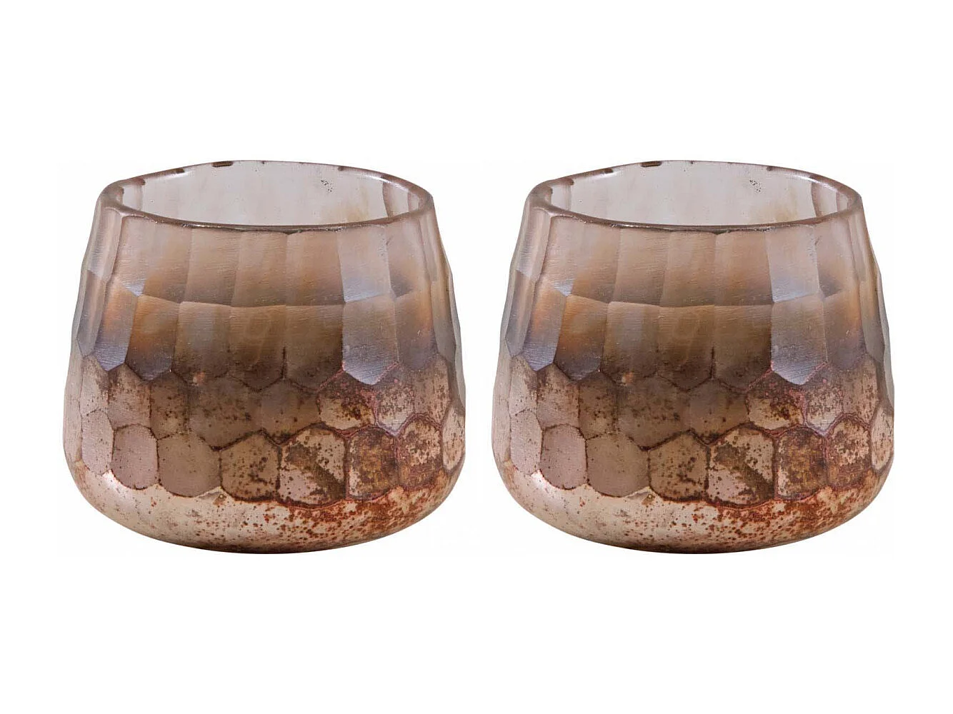 Photophore en verre teinté rose et doré 10 cm (Lot de 2)