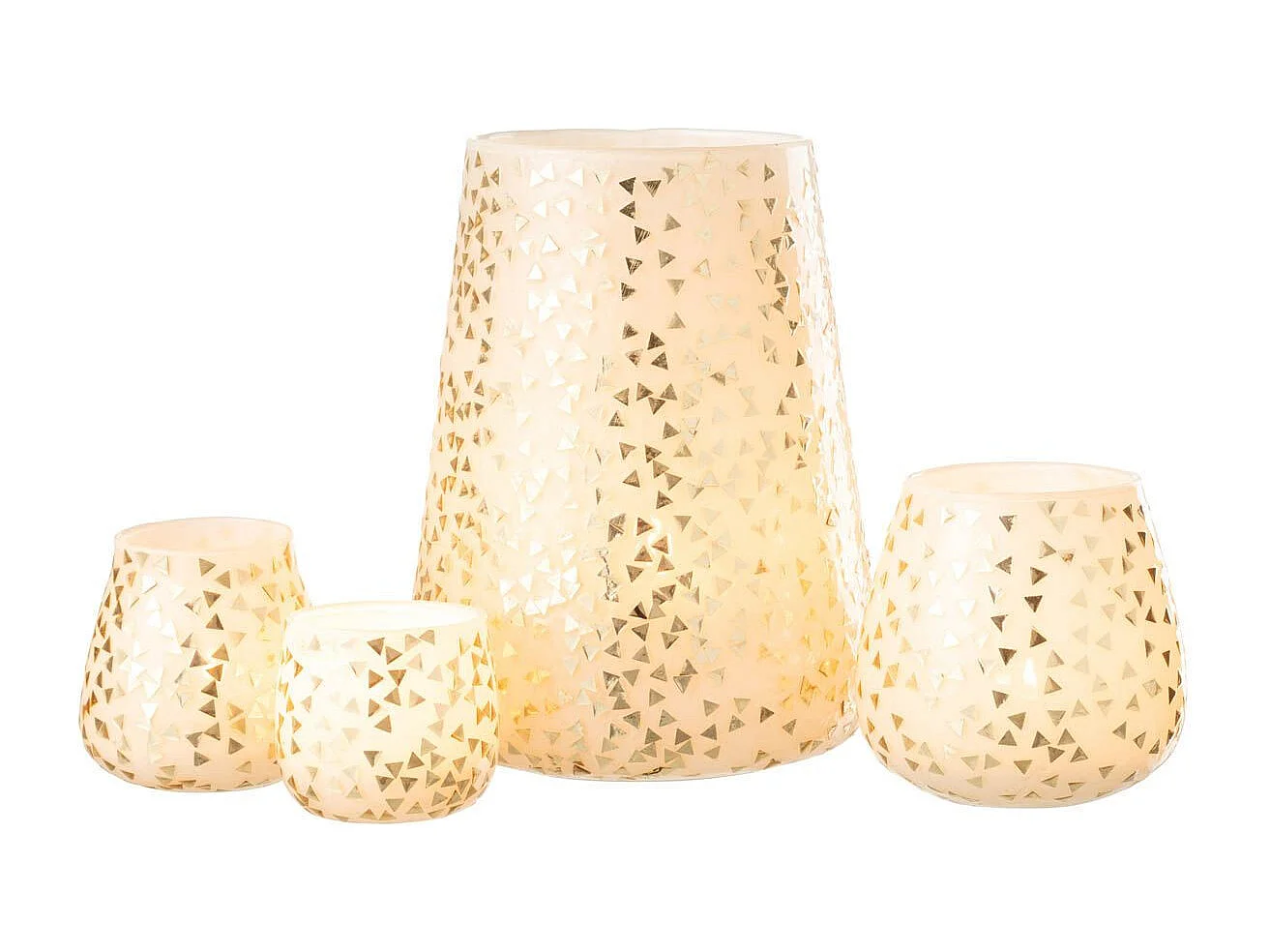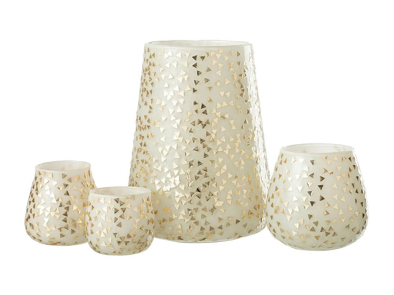 Photophore en Verre "Triangle" 23cm Blanc & Or