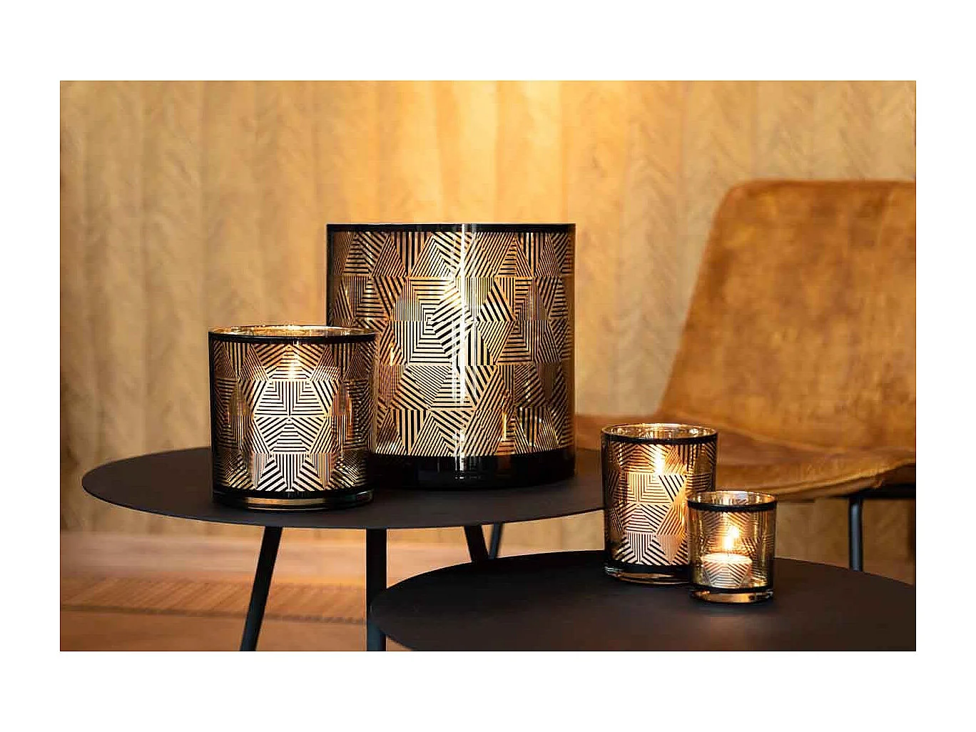 Photophore en Verre et Cuir - Marron