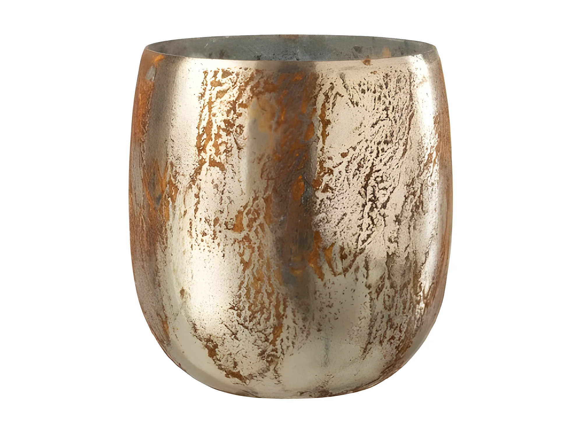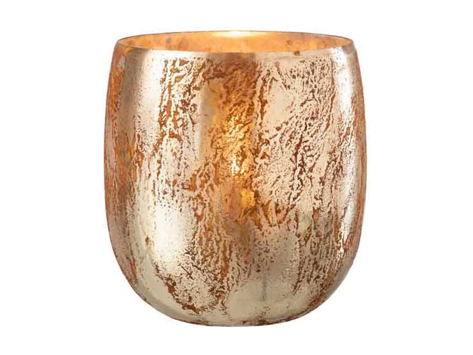 Photophore en Verre "Vintage" 16cm Marron & Or