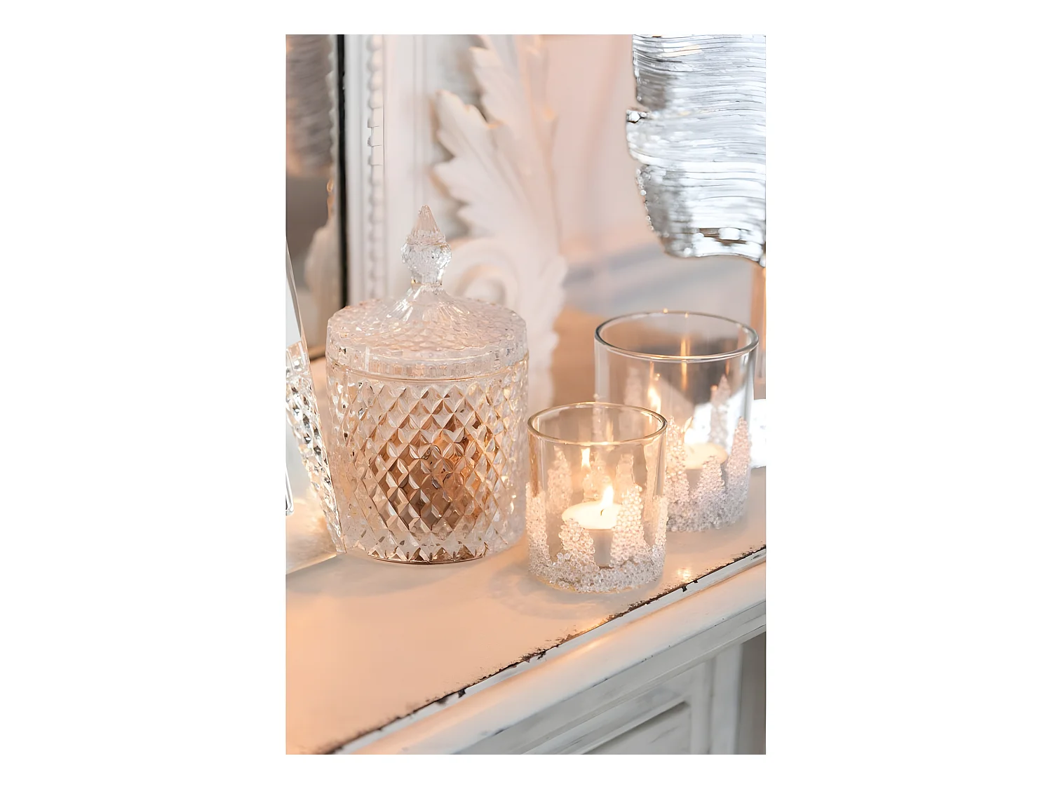 Photophore givré en verre transparent 8.5x8.5x10 cm