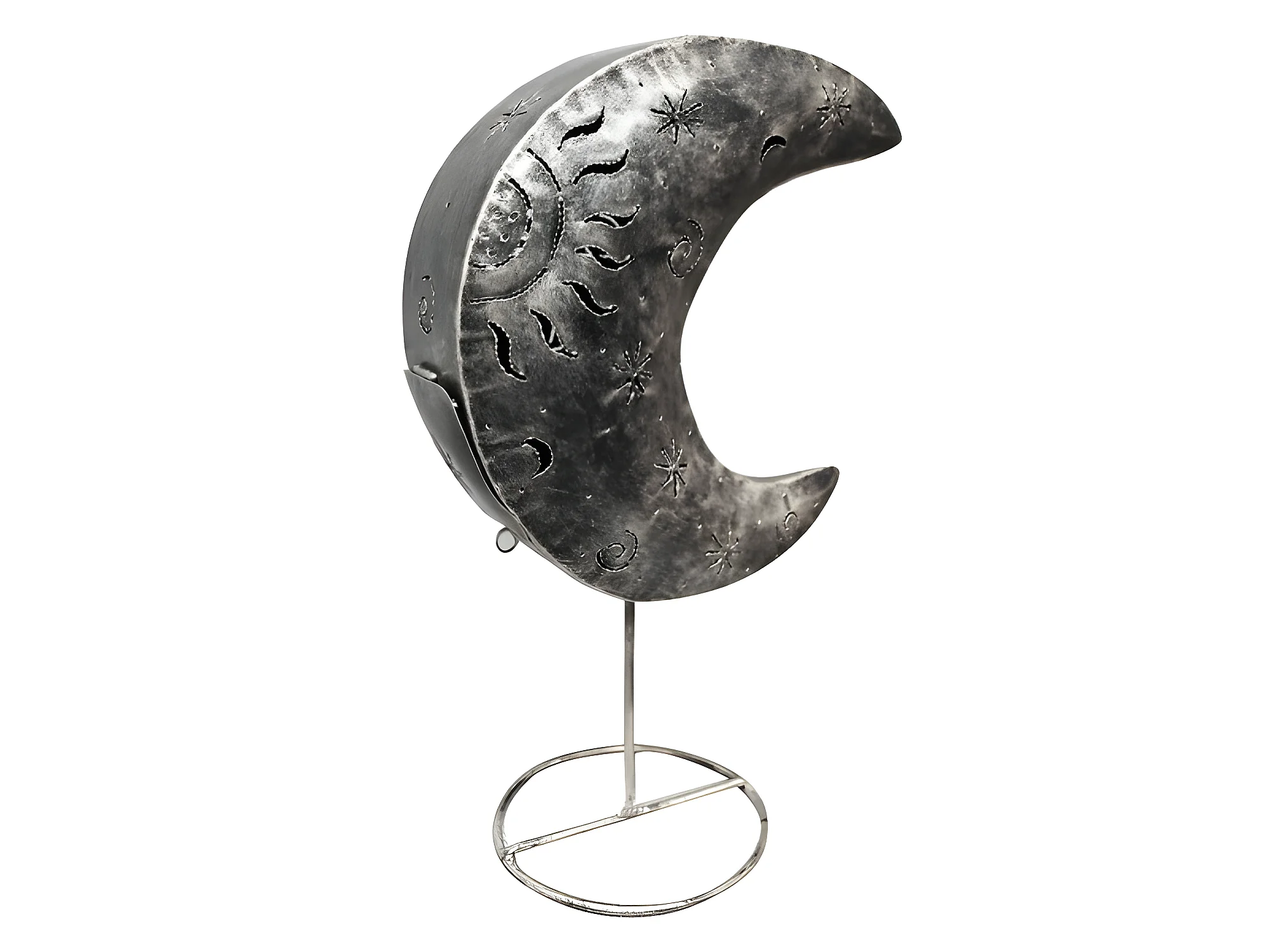 Photophore H. 98 cm lune en métal peint argenté - LUNA SILVER
