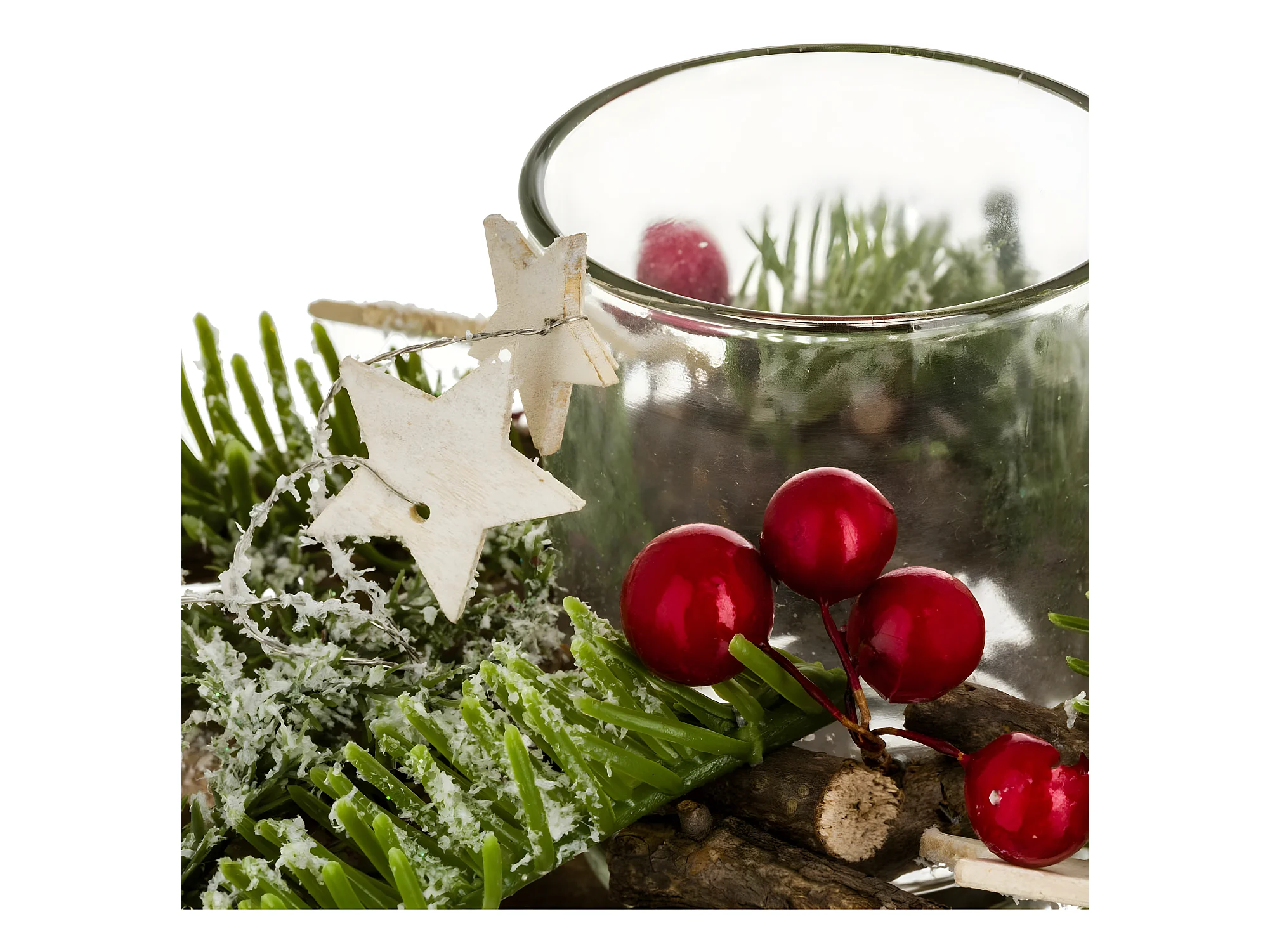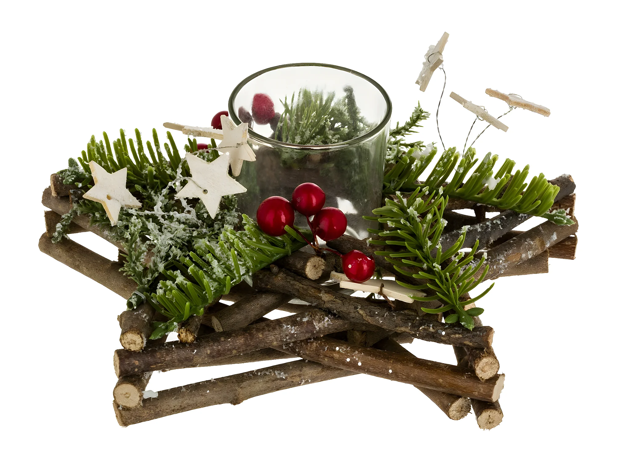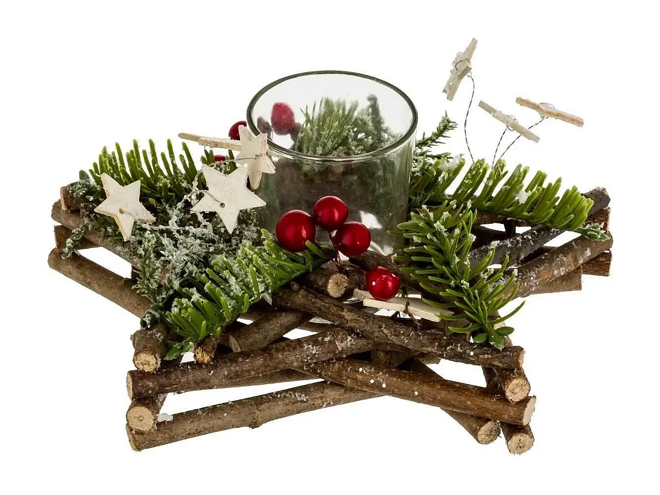 Photophore Rondins Étoiles "Soir" 20cm Naturel & Vert