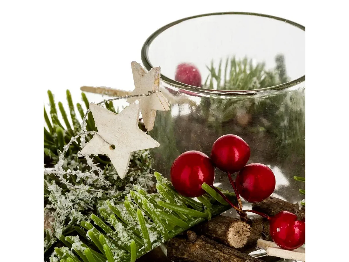 Centre de Table Photophore "Soir de Noël" 39cm Vert