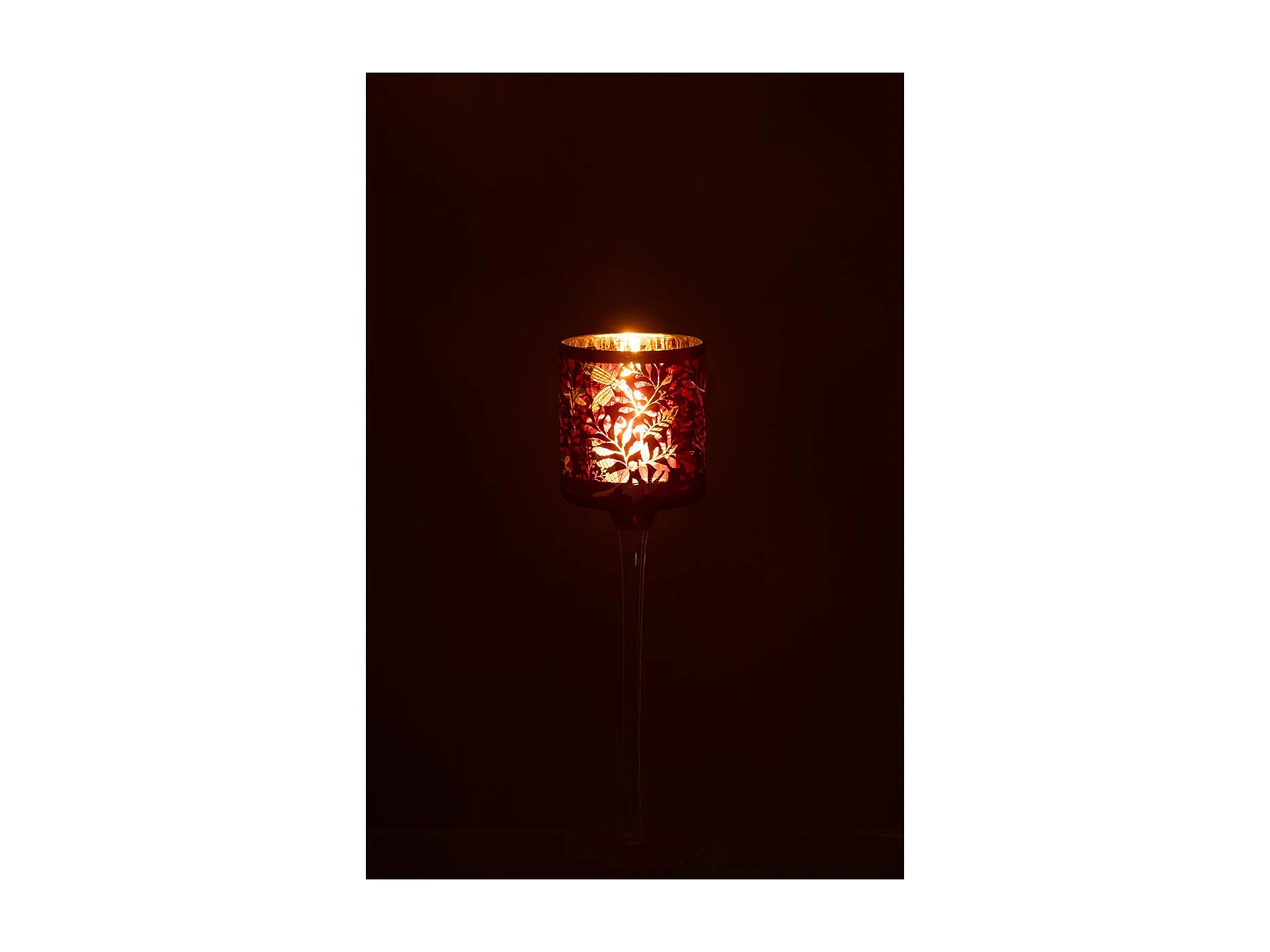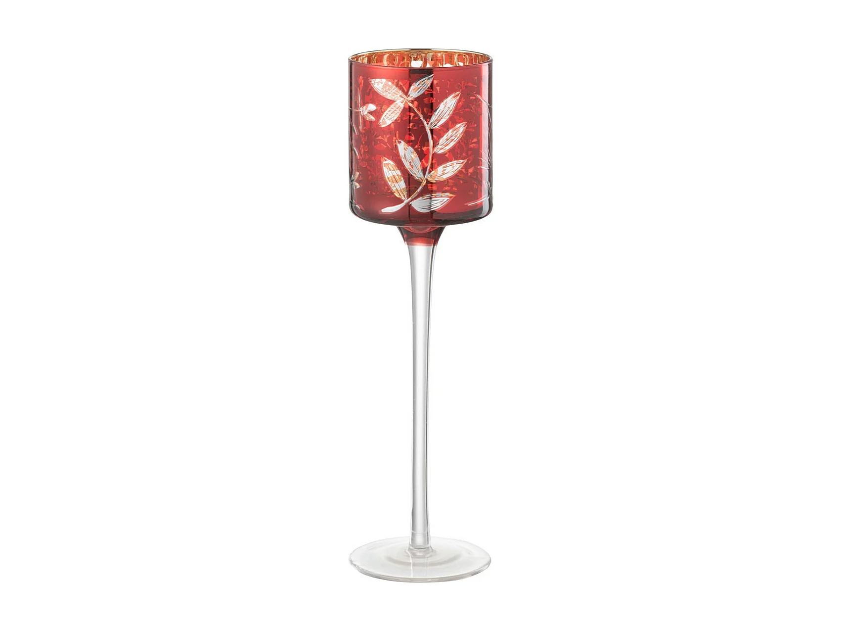 Photophore sur Pied en Verre "Feuilles" 25cm Rouge