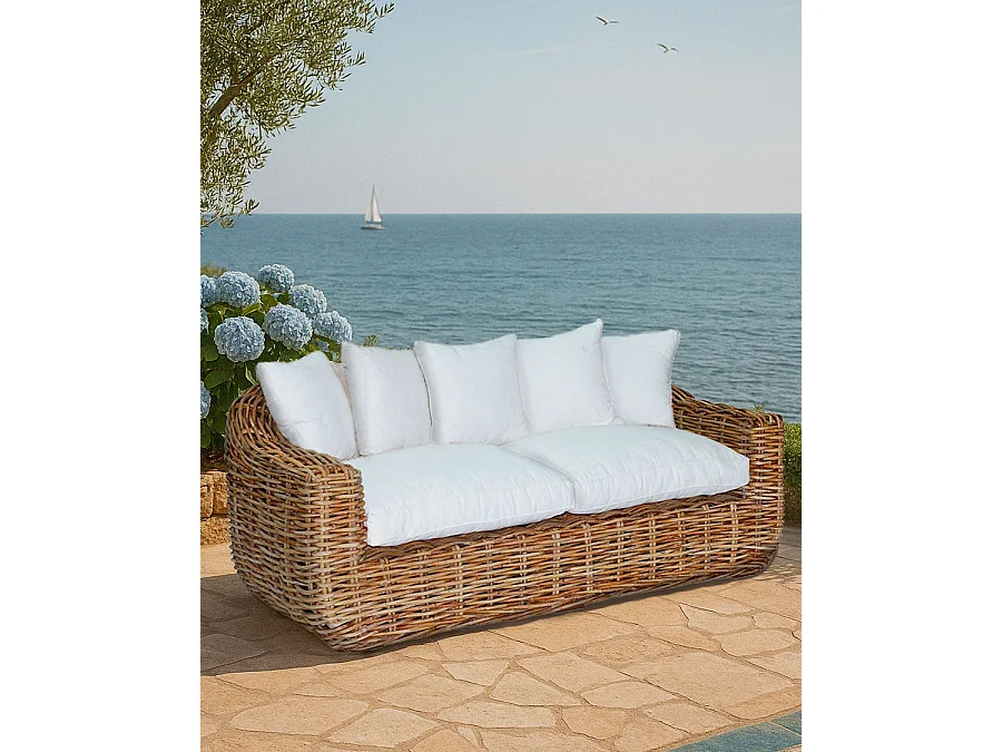 Phuket - Canapé de jardin 3 places en rotin