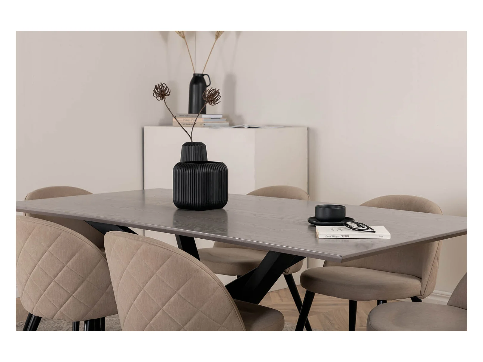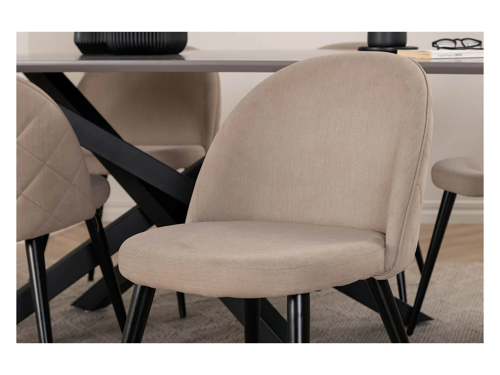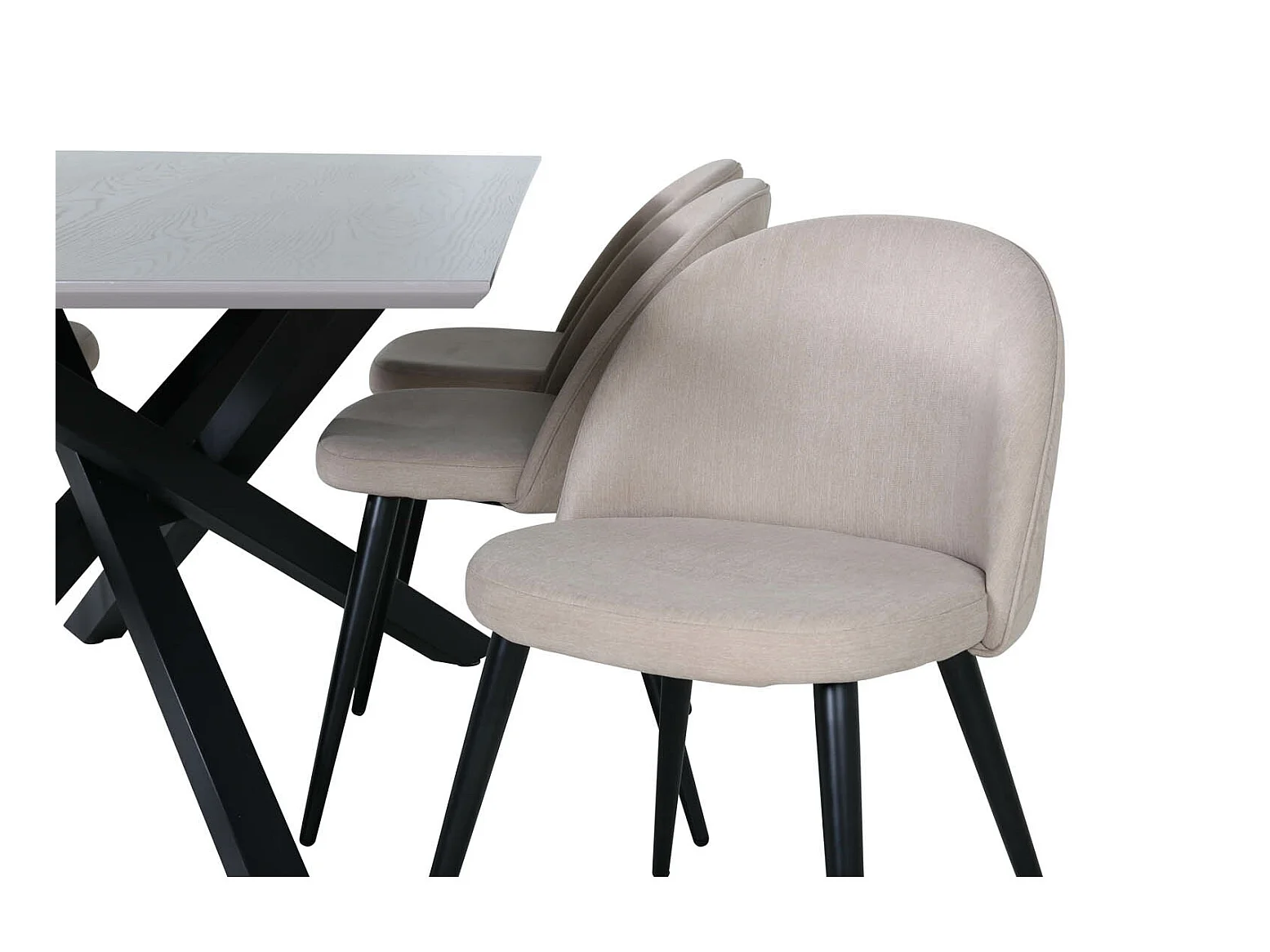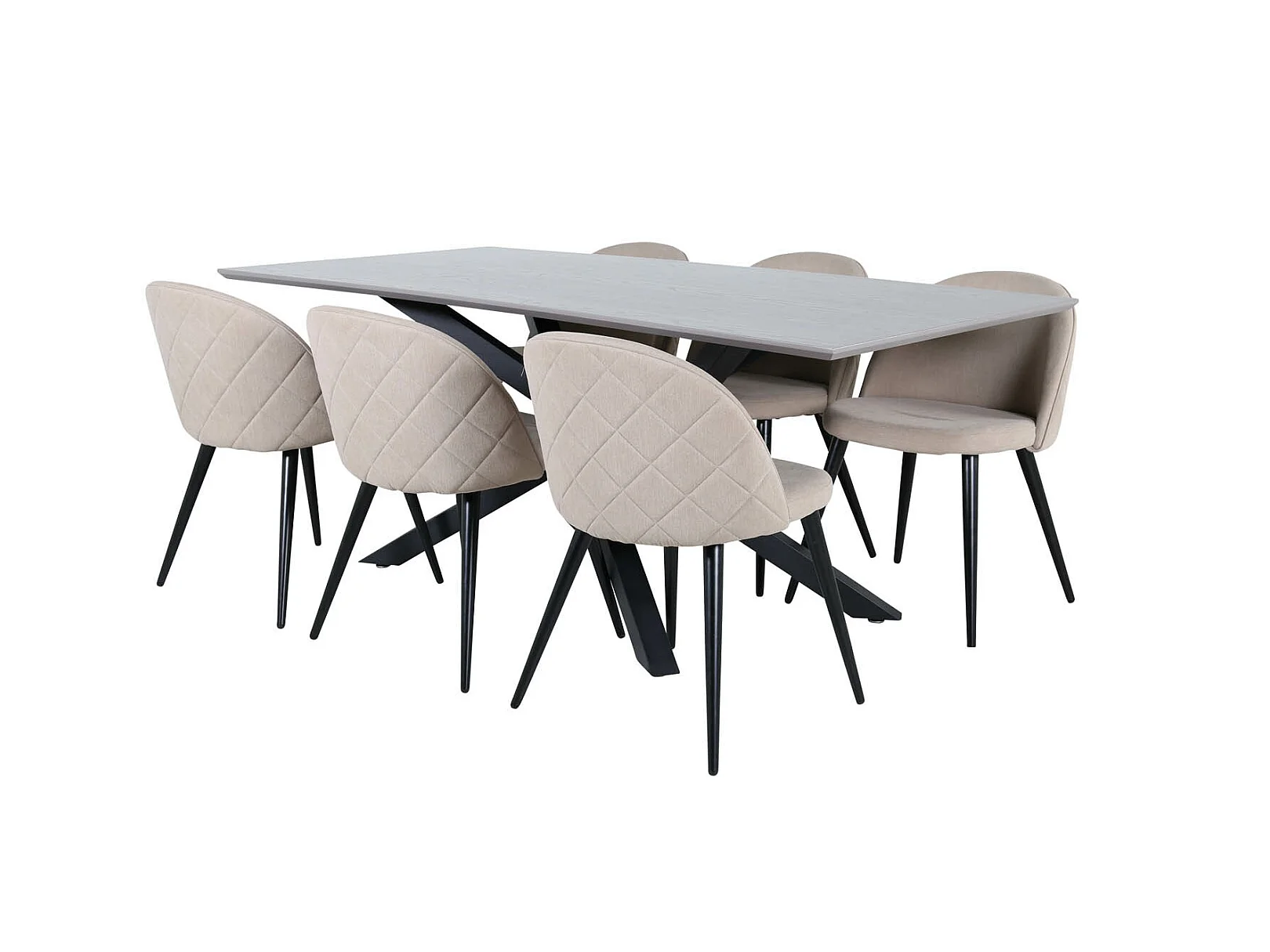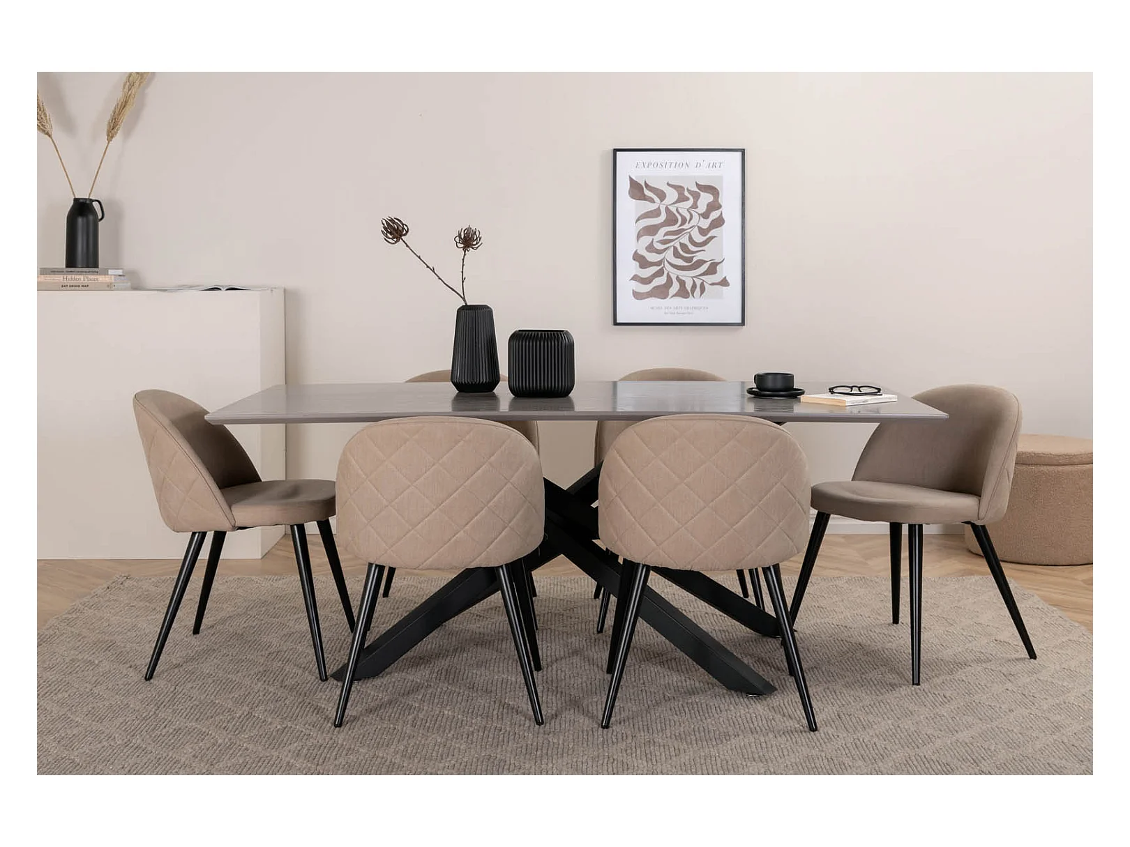 PiazzaGRBL ensemble table, table gris et 6 Velvet Stitches chaises beige.