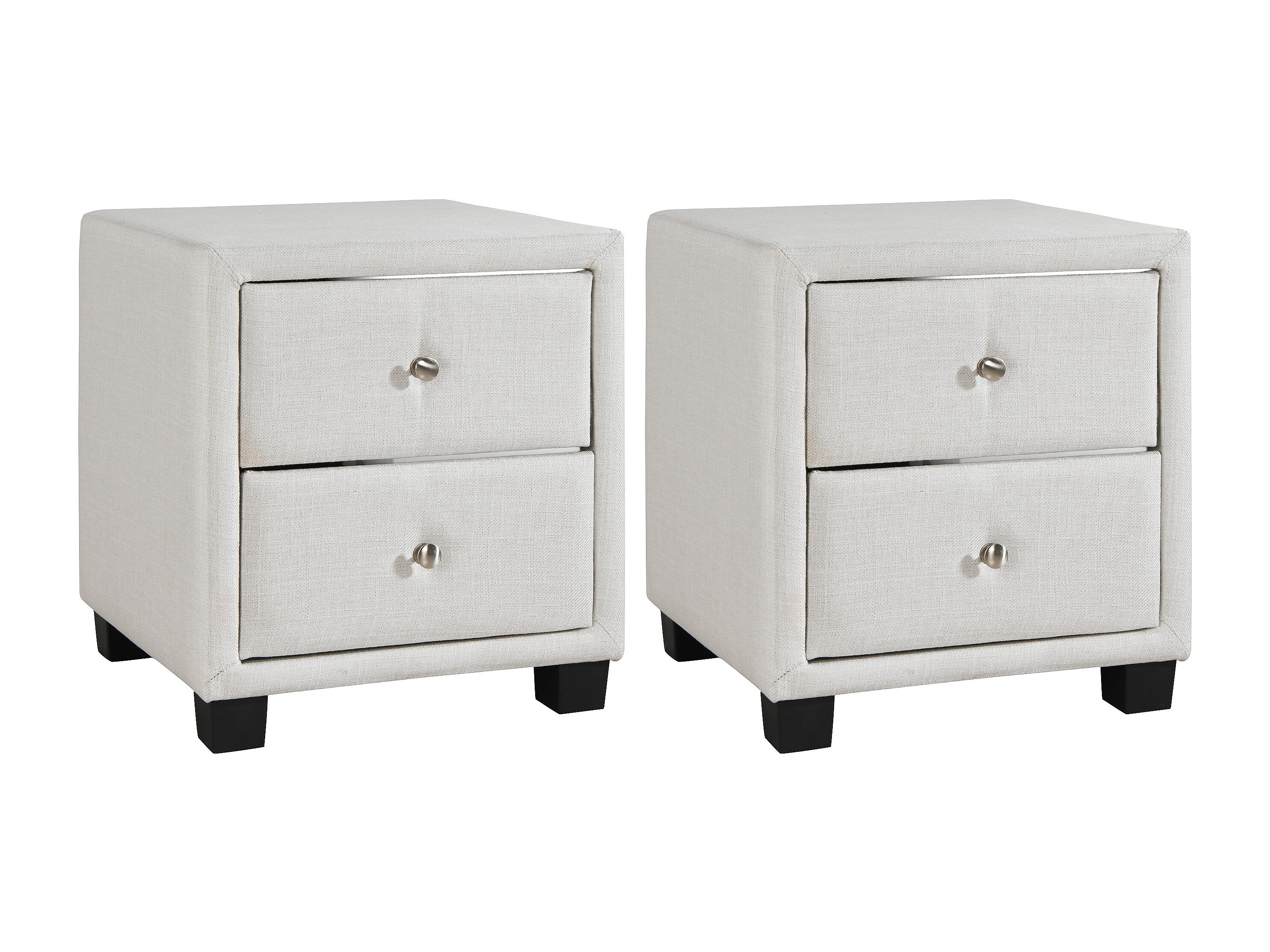 Lot de 2 tables de chevet avec 2 tiroirs - Tissu - Ivoire - PICHONIA