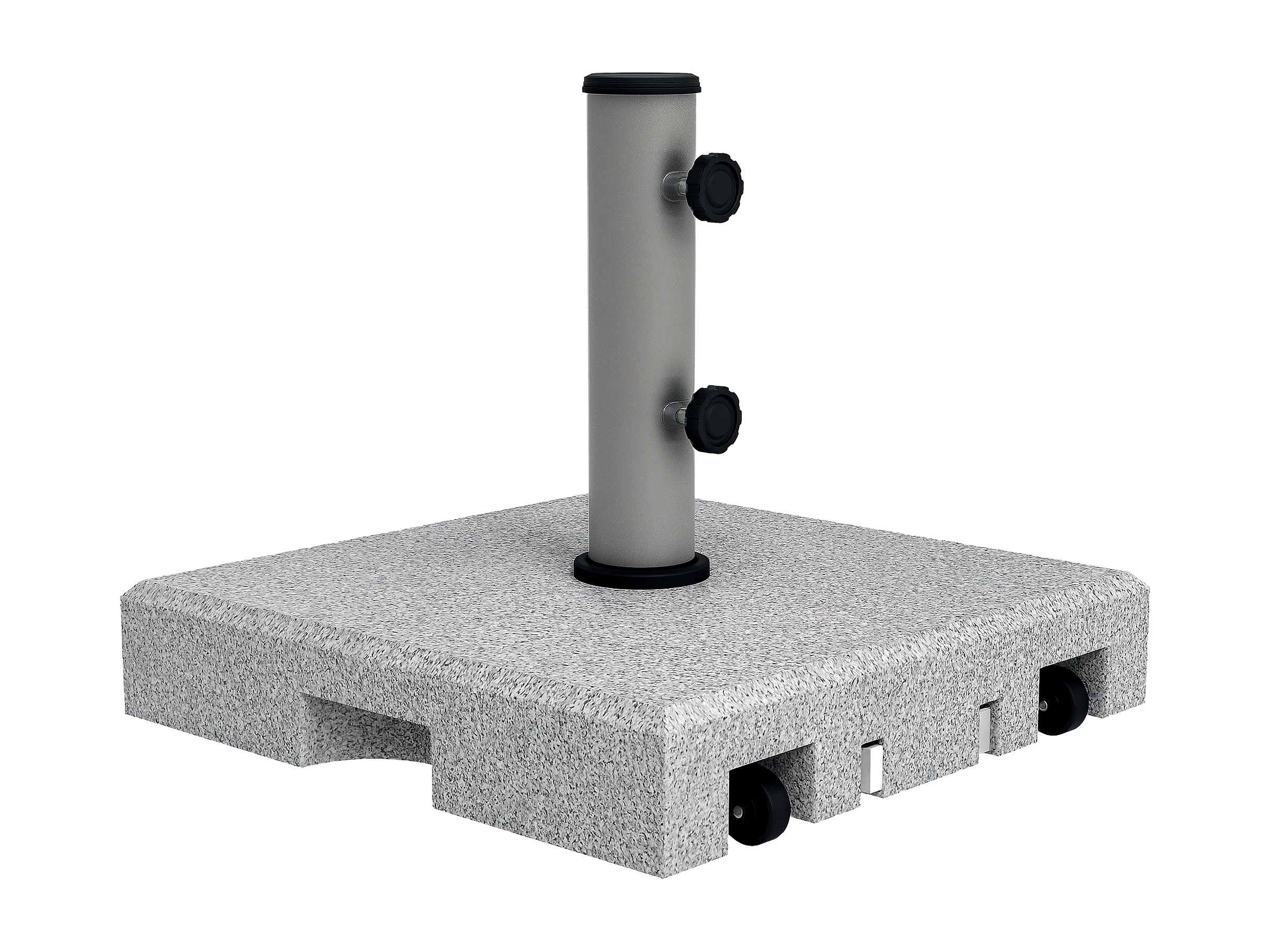 Pied de parasol - Base de lestage en granite carré 28 Kg 2 roulettes poignée