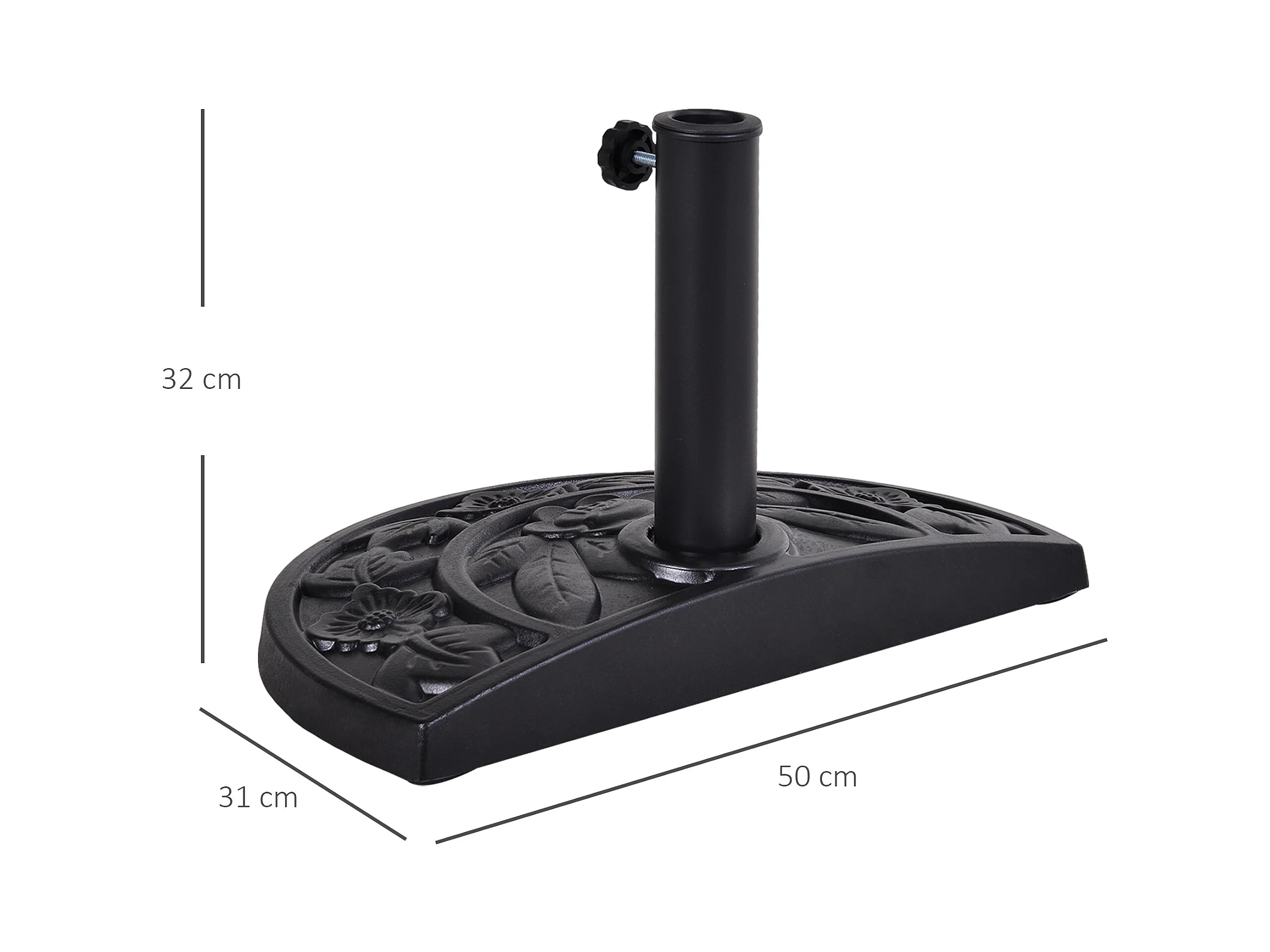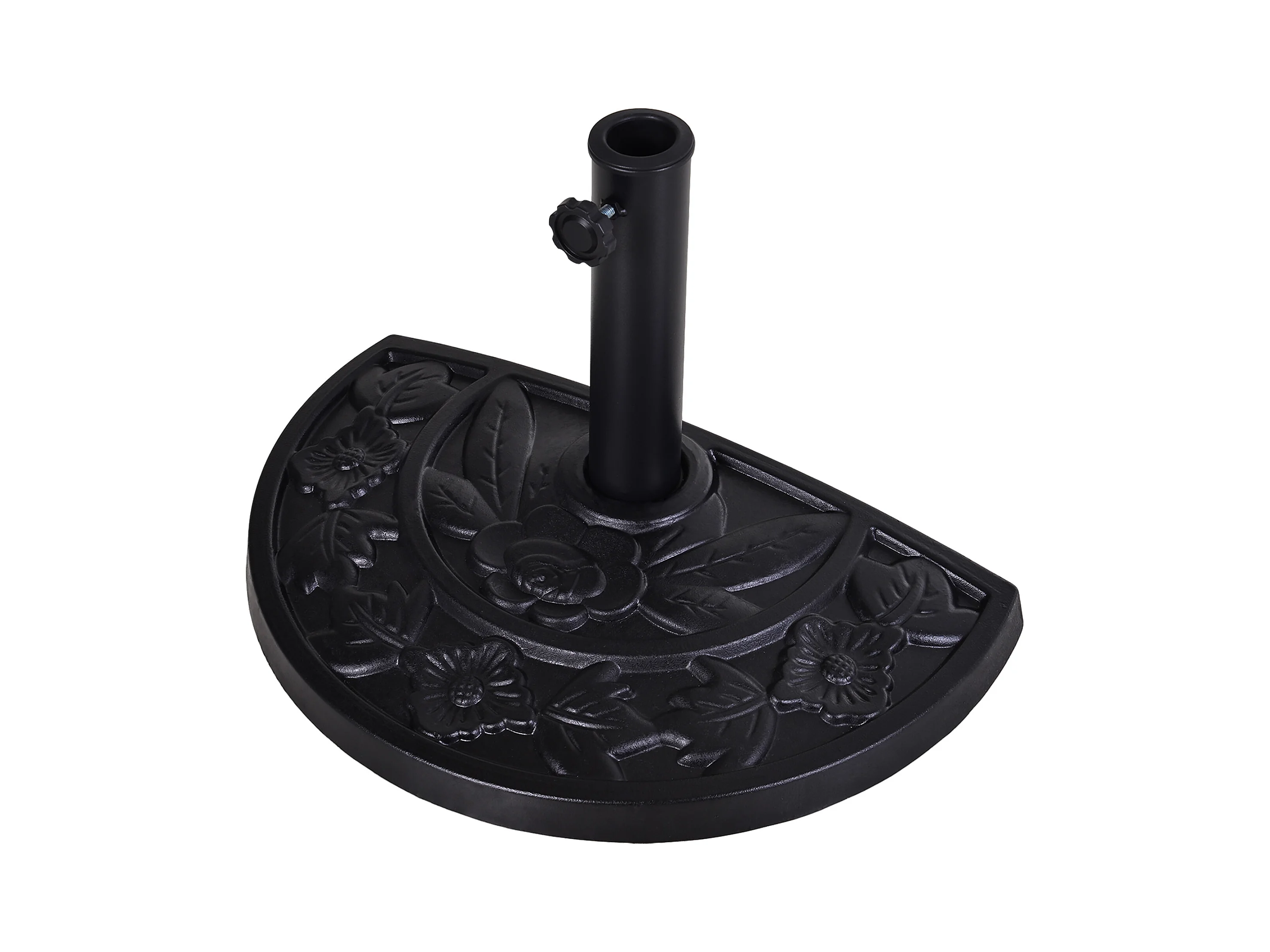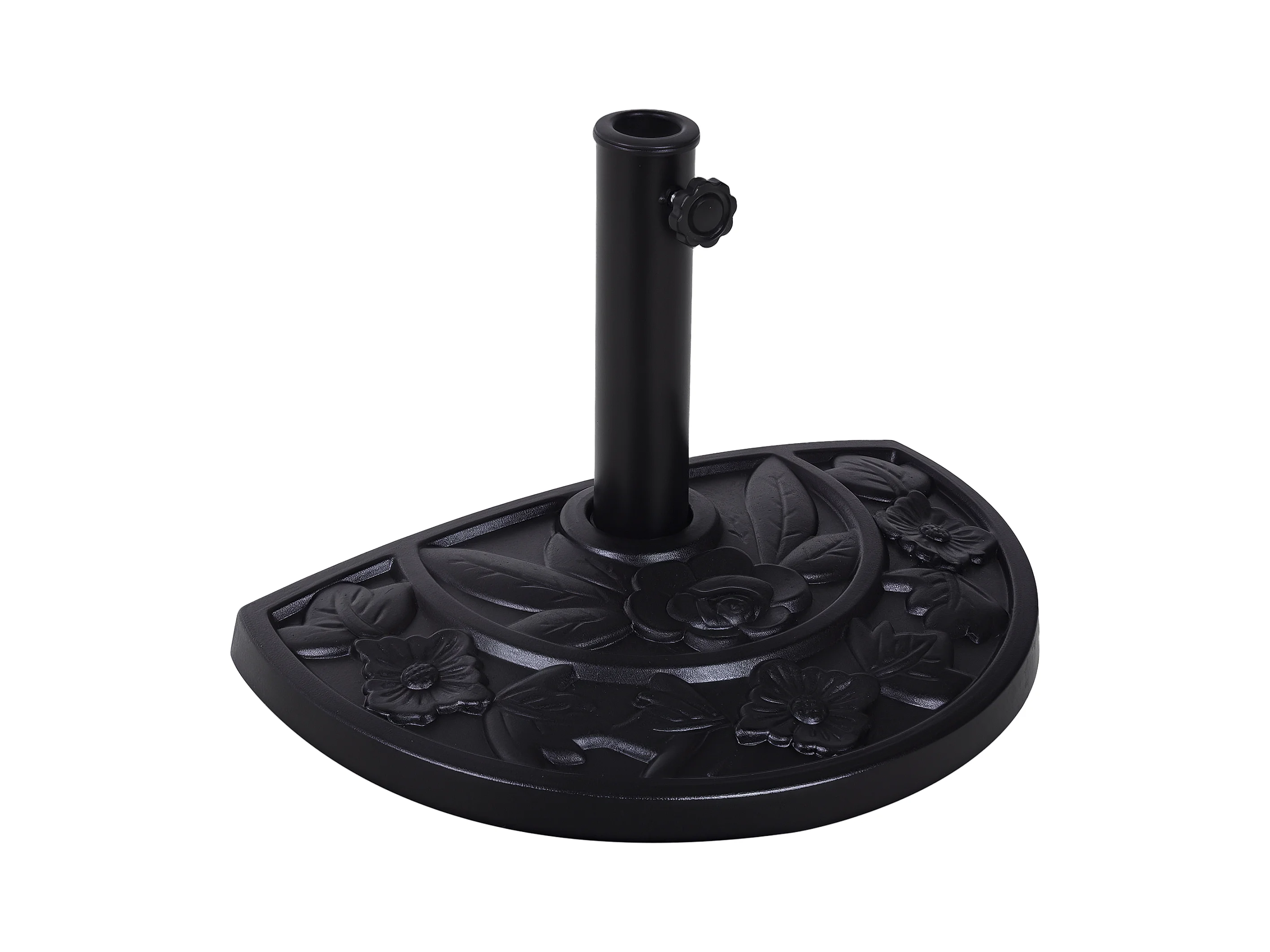 Pied de parasol base de lestage parasol demi-cercle résine imitation fonte motif fleur 50L x 31l x 32H cm noir