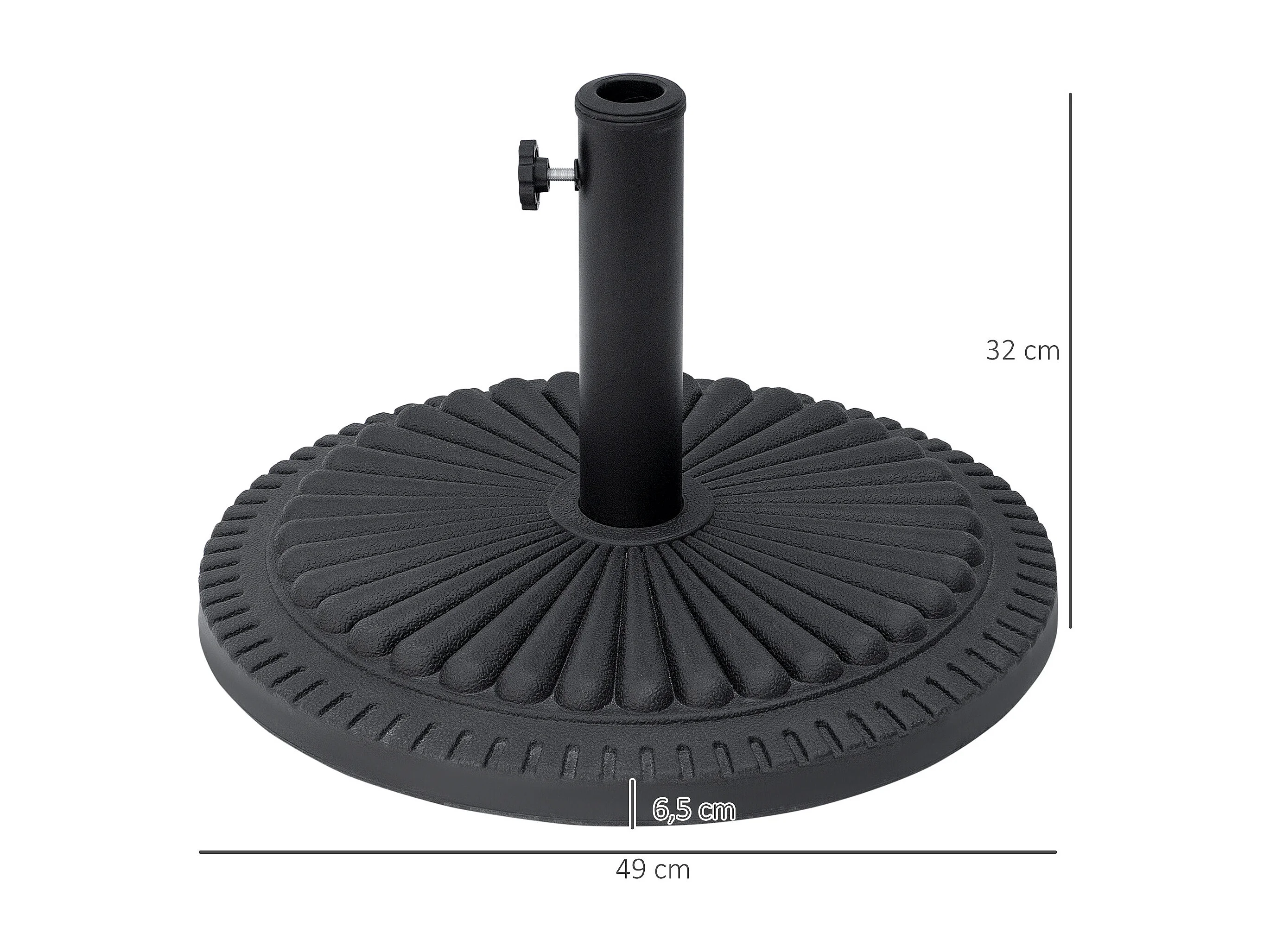 Pied de parasol base de lestage parasol rond ciment HDPE motif rosace Ø 49 cm poids net 15 Kg noir