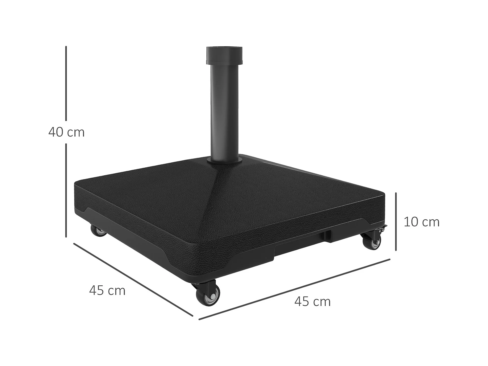 Pied de parasol carré avec 4 roulettes et poignée HDPE noir