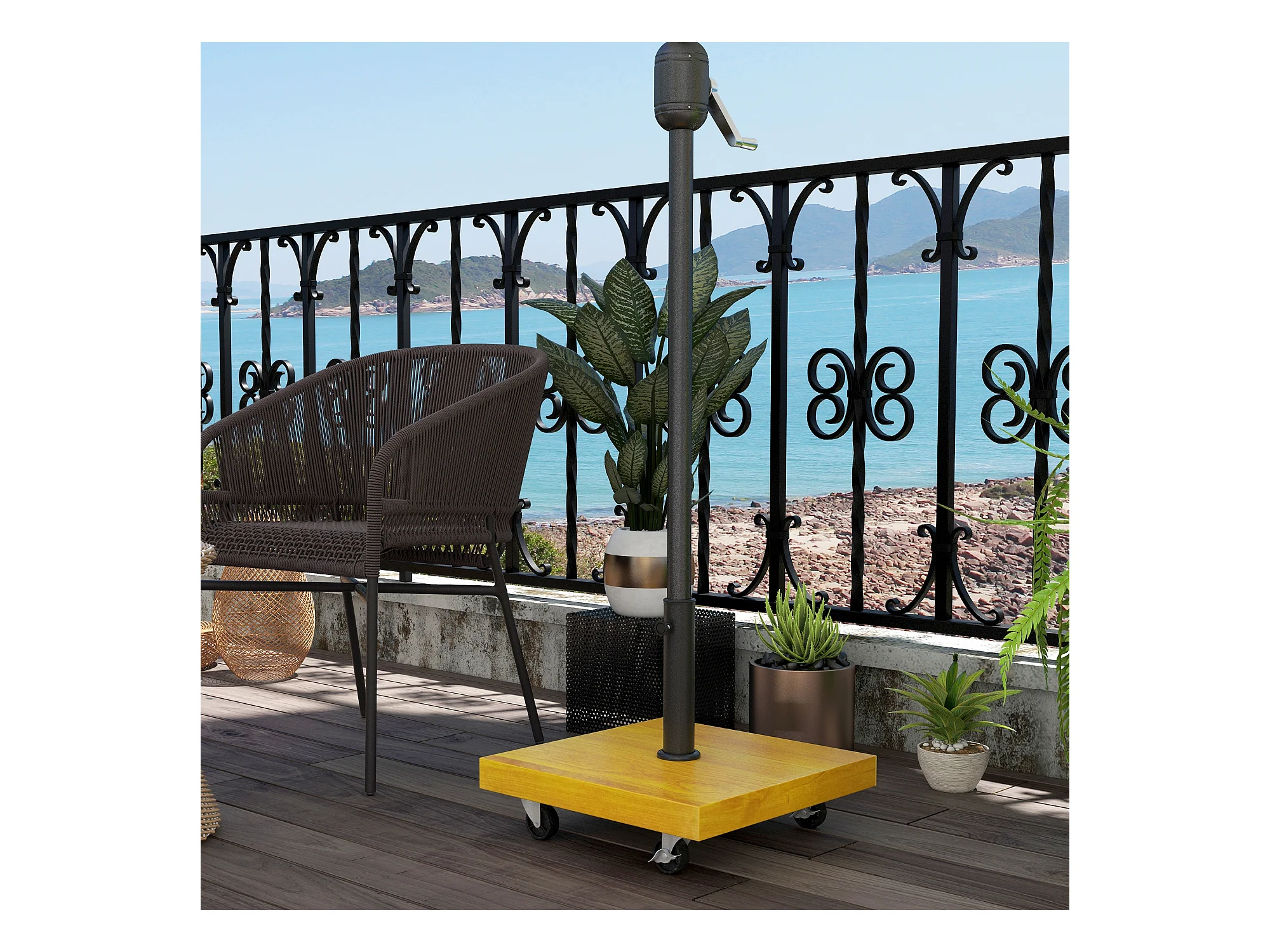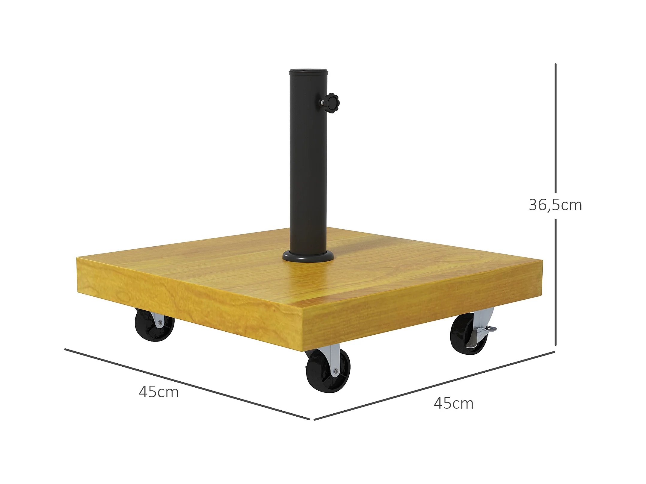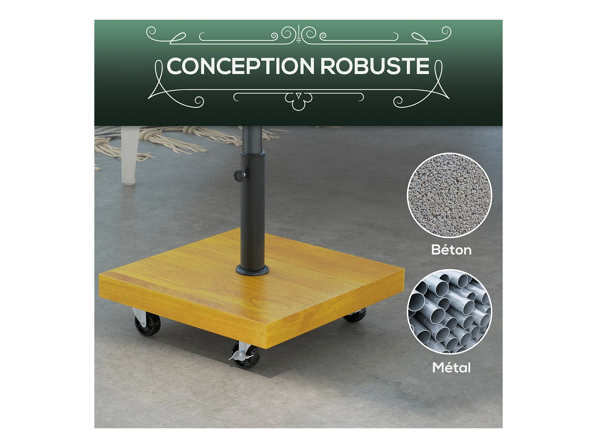 Pied de parasol carré - base de lestage poids net 25 Kg métal 4 roulettes