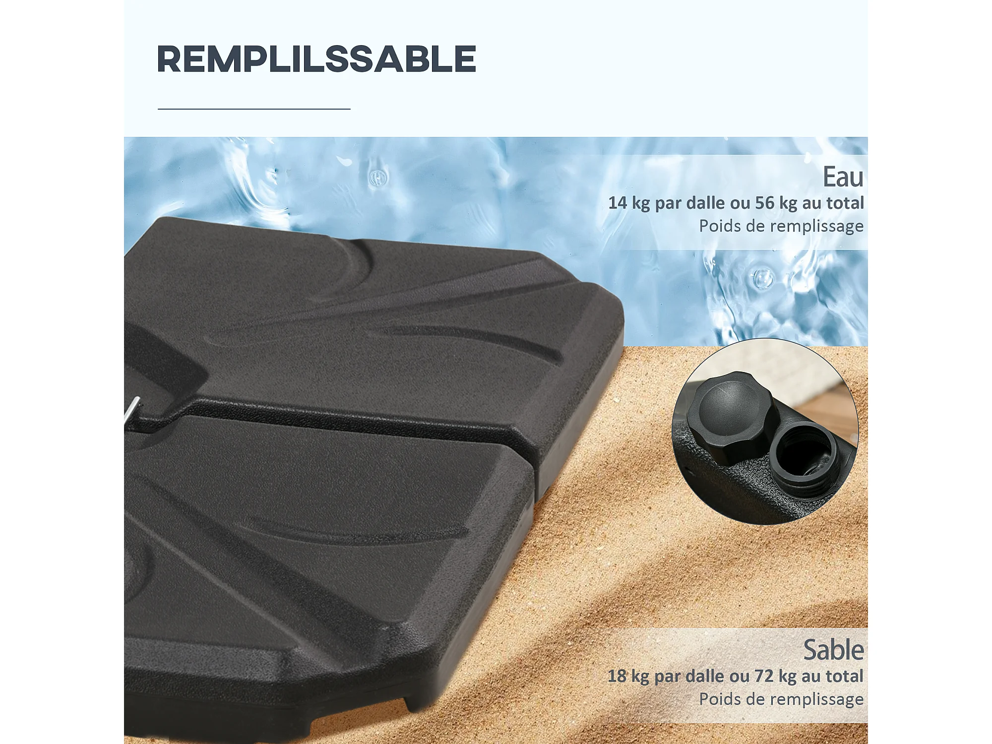 Pied de parasol lot de 4 dalles de lestage pour parasol déporté dim. tot. 103L x 103l x 8H cm HDPE texturé noir