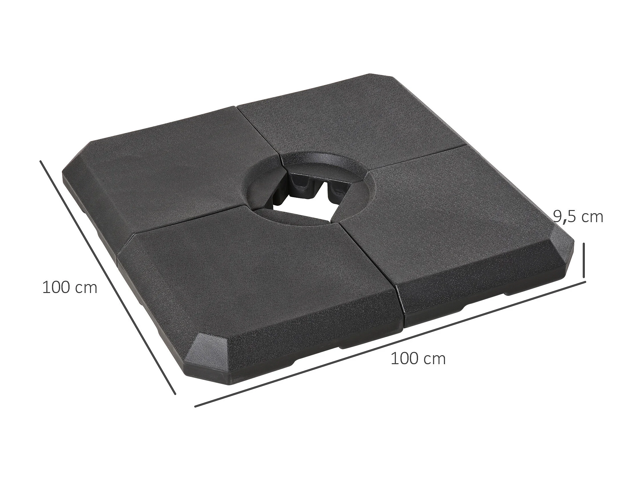 Pied de parasol lot de 4 dalles pour parasol à lester dim. tot. 100L x 100l x 9,5H cm HDPE noir