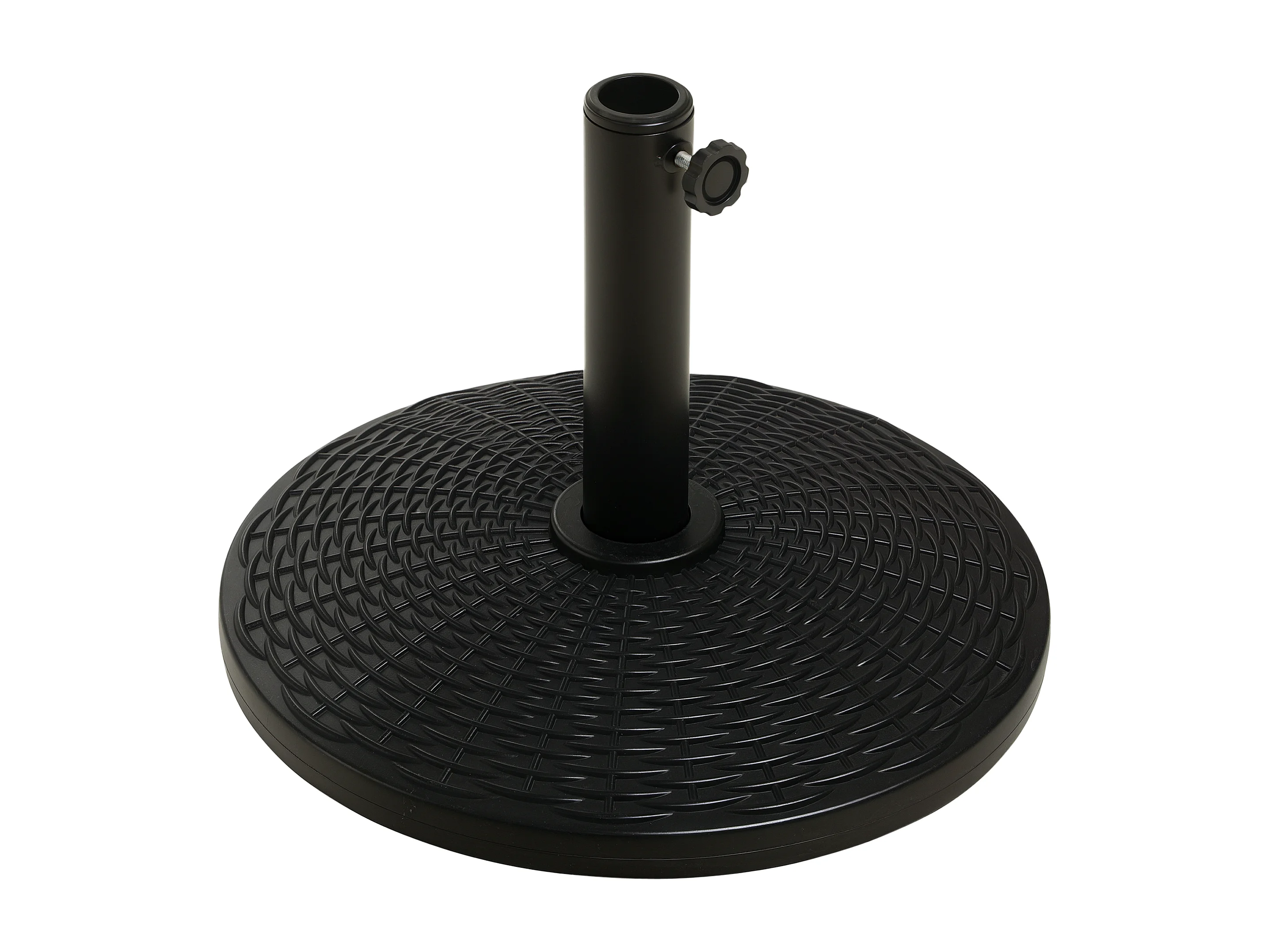 Pied de parasol rond base de lestage Ø 44 x 32 cm résine imitation rotin poids net 11 Kg noir