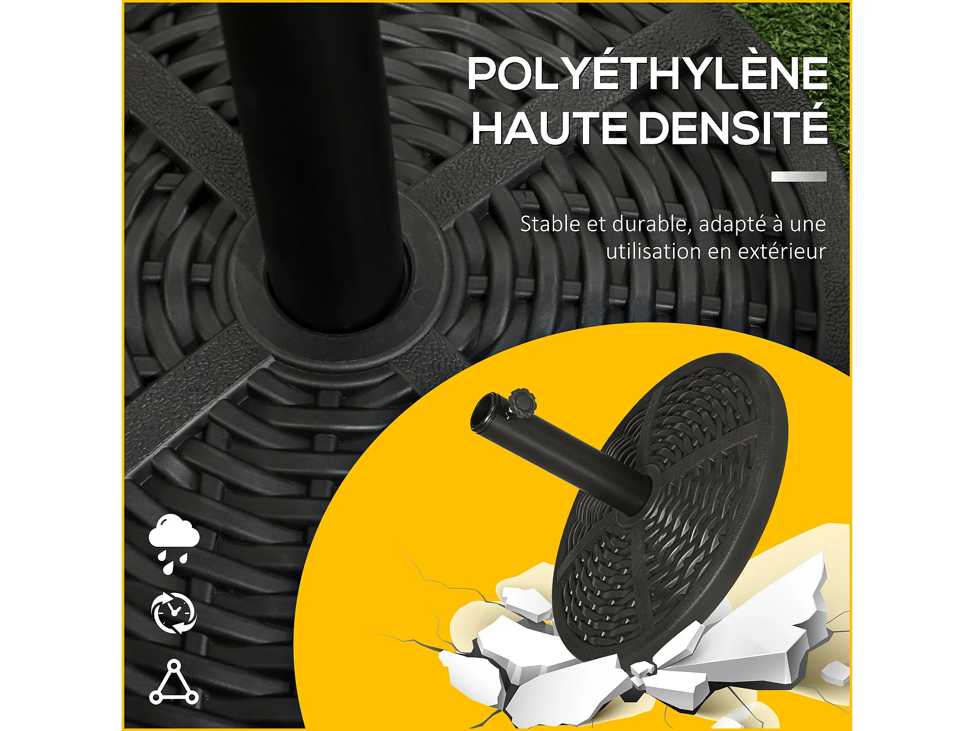 Pied de parasol rond base de lestage Ø 45 x 33H cm HDPE aspect rotin tressé poids net 8 Kg noir