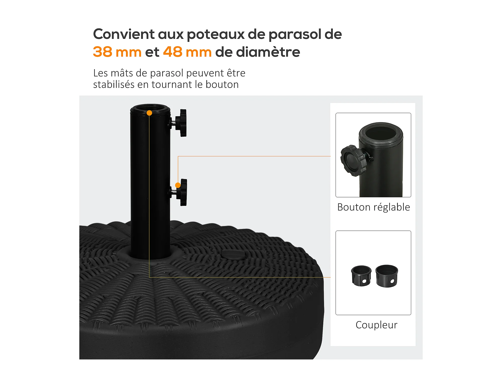 Pied de parasol rond base de lestage Ø 51 x 36 cm HDPE aspect résine noir