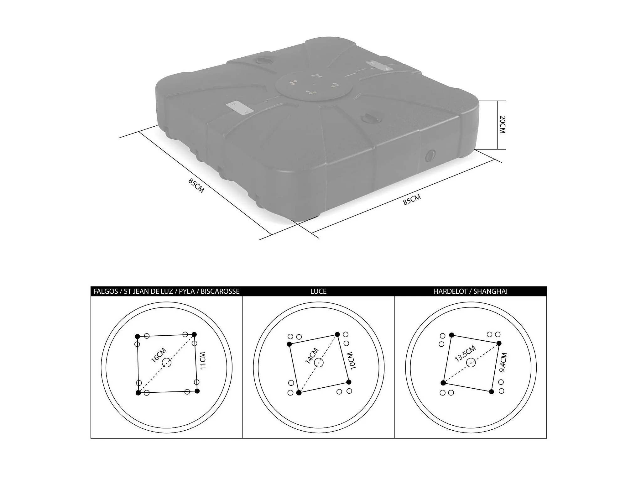 Pied pour parasol déporté remplissable 100L en plastique noir avec roulettes - Base à lester