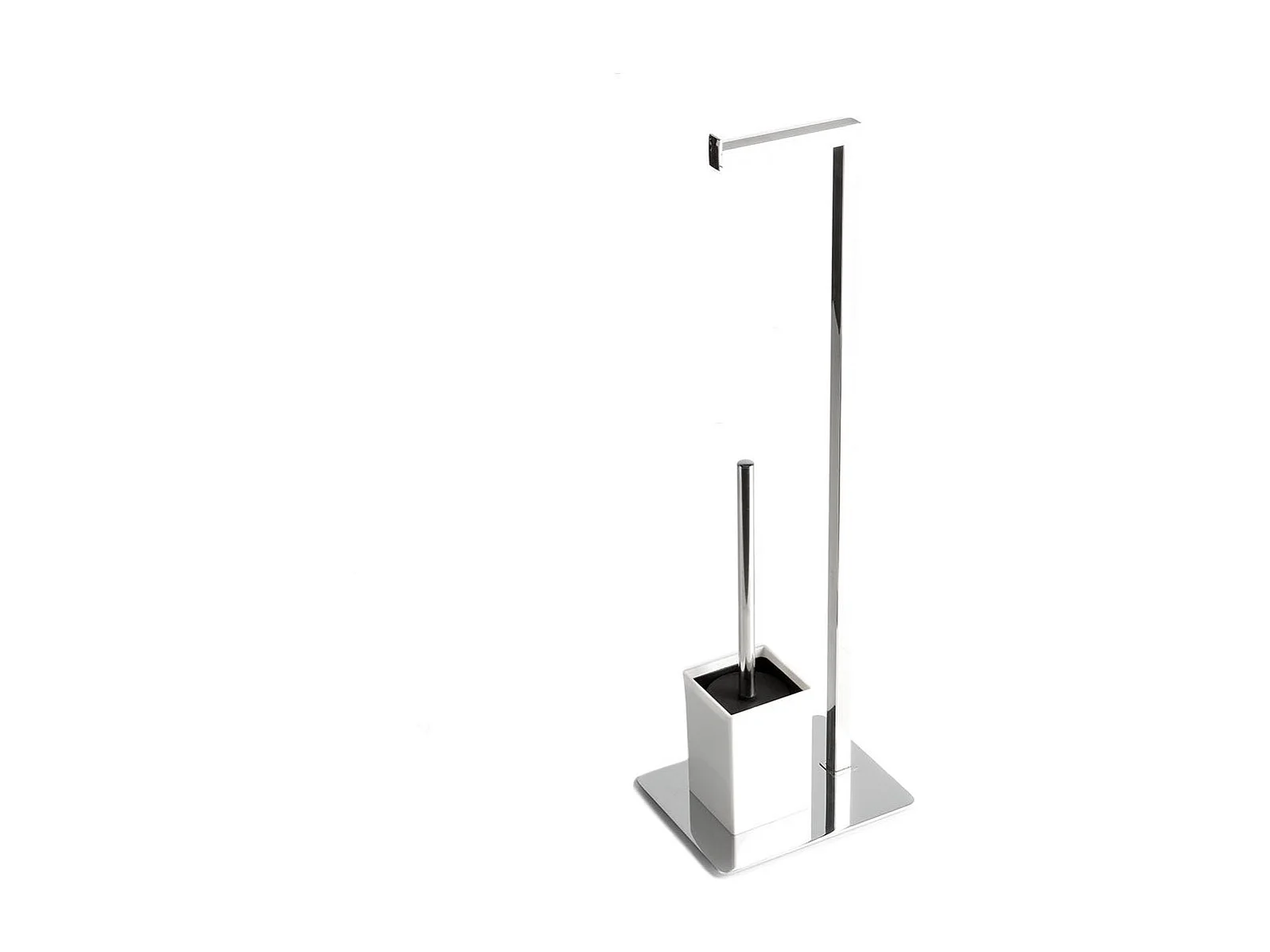 Piédestal Avec Cadre Porte-Rouleau De Papier Toilette Chromé Et Porte-Brosse De Toilette Blanc