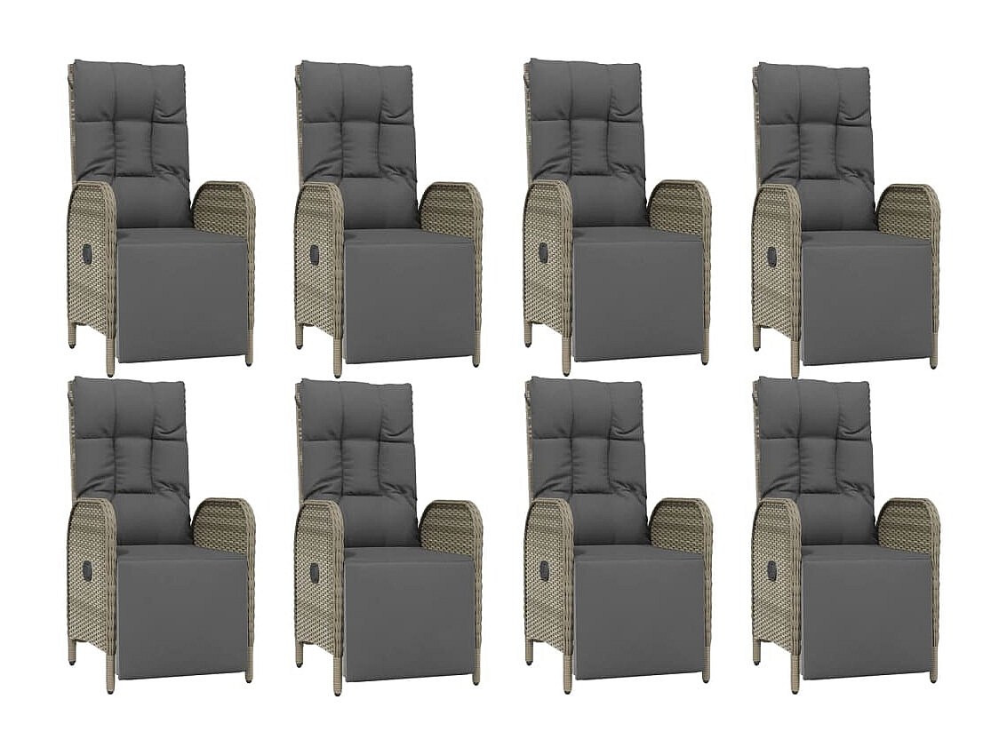 Piero Ensemble à manger de jardin 9 pcs coussins gris résine tressée