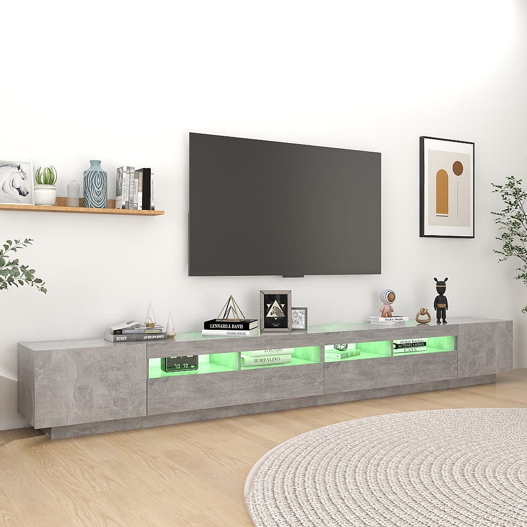Pierre-Louis Meuble TV avec lumières LED Gris béton 300x35x40 cm