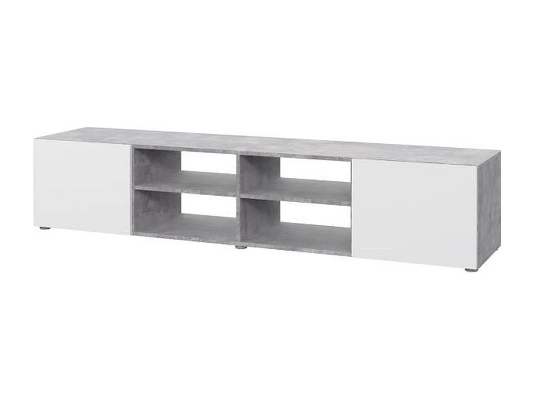 PILVI Meuble TV - Blanc et beton gris clair - L 185 x P 42 x H 31 cm