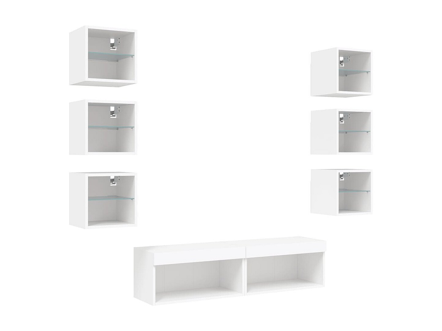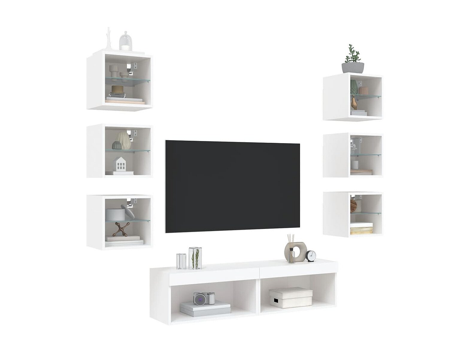Pinar Unités murales TV avec LED 8 pcs blanc bois d'ingénierie