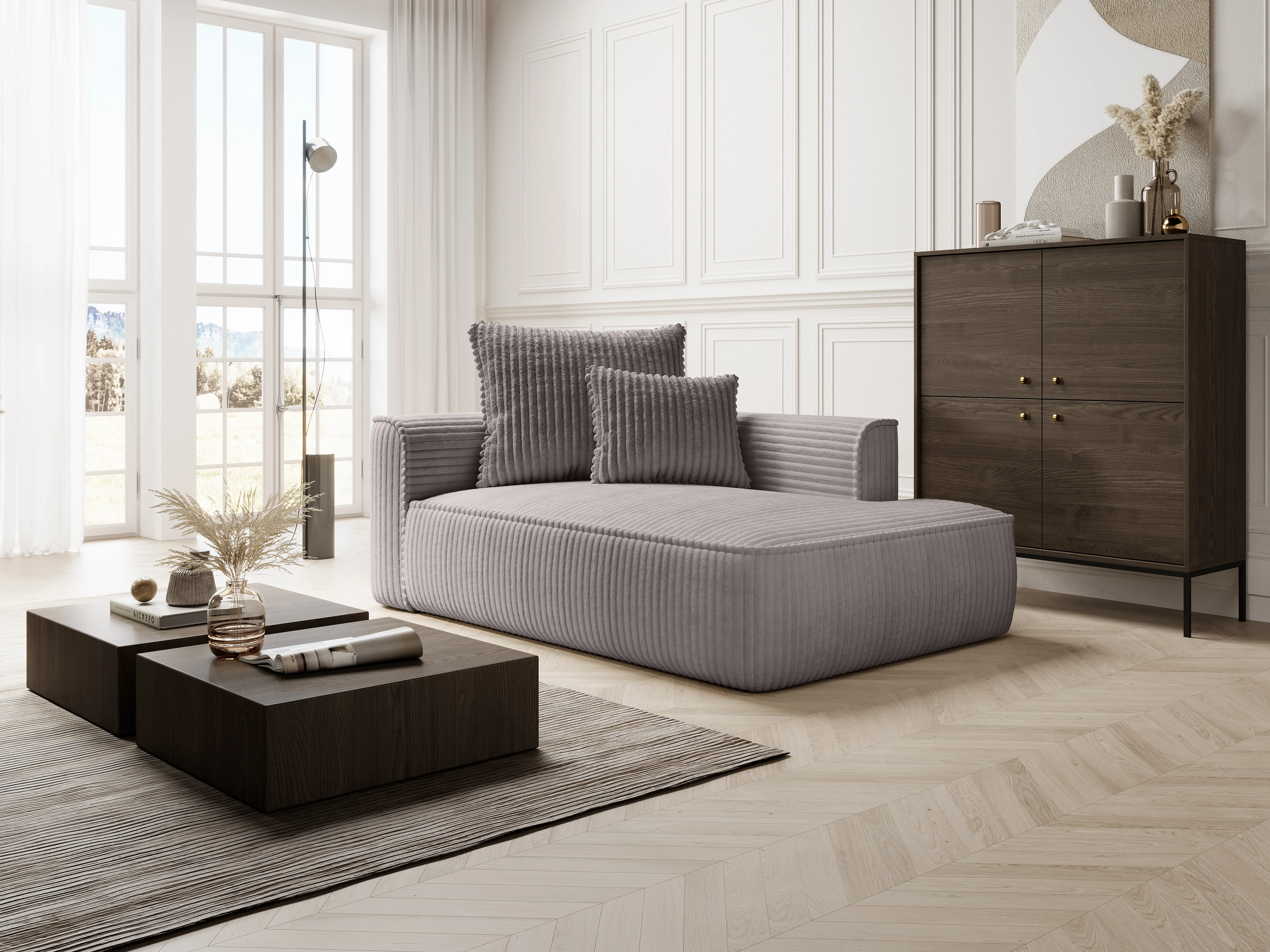 Méridienne droite en velours côtelé grosses côtes gris clair PINETA