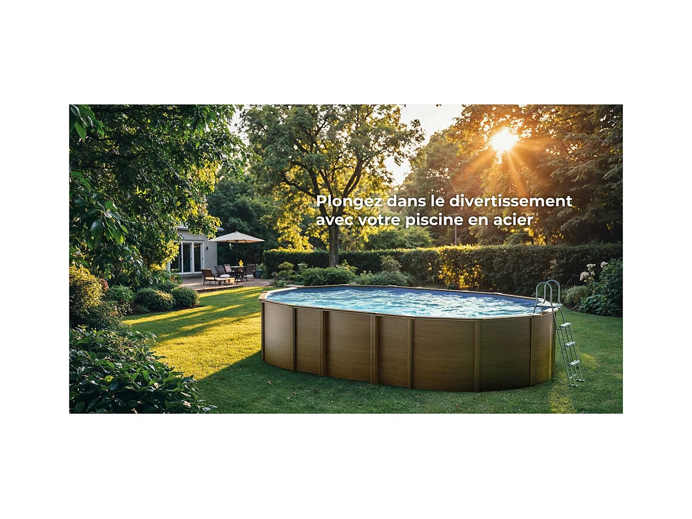 Piscine acier aspect bois Amazonia ovale 7,44 x 3,99 x 1,32 m - Gré