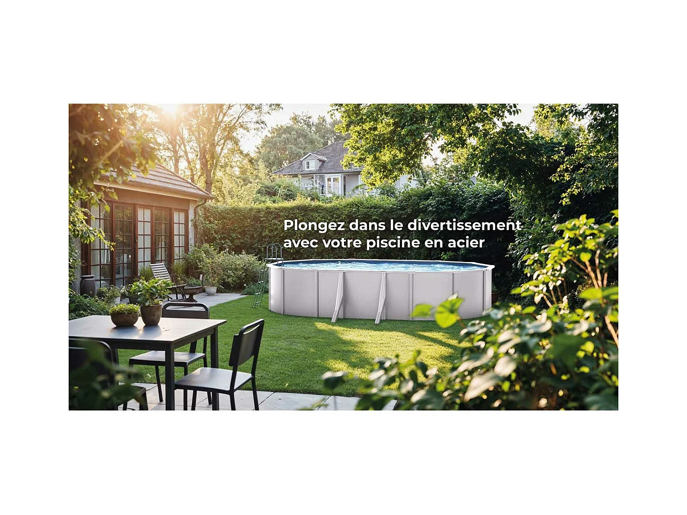 Piscine acier blanc Atlantis ovale 7,44 x 3,99 x 1,32 m - Gré