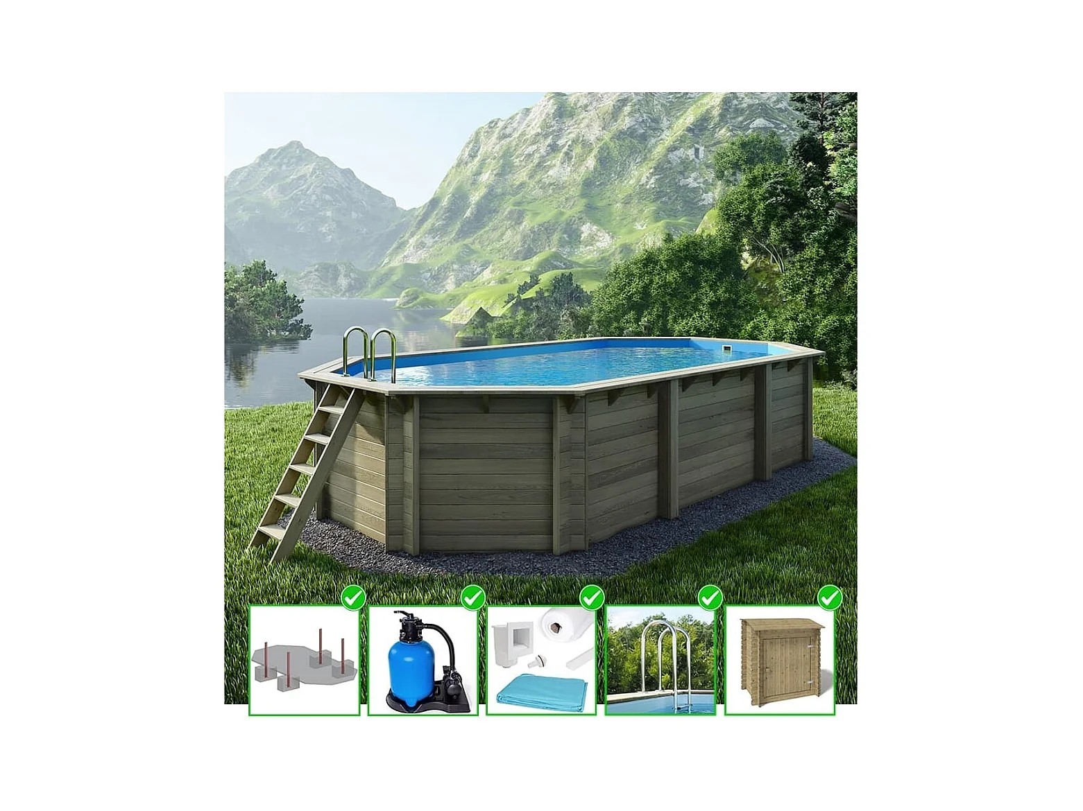 Piscine en bois Nemo 7.3x3.97 - H.1.45 m fixations à visser - BAS7305OSPL+SZA - ALTANKA