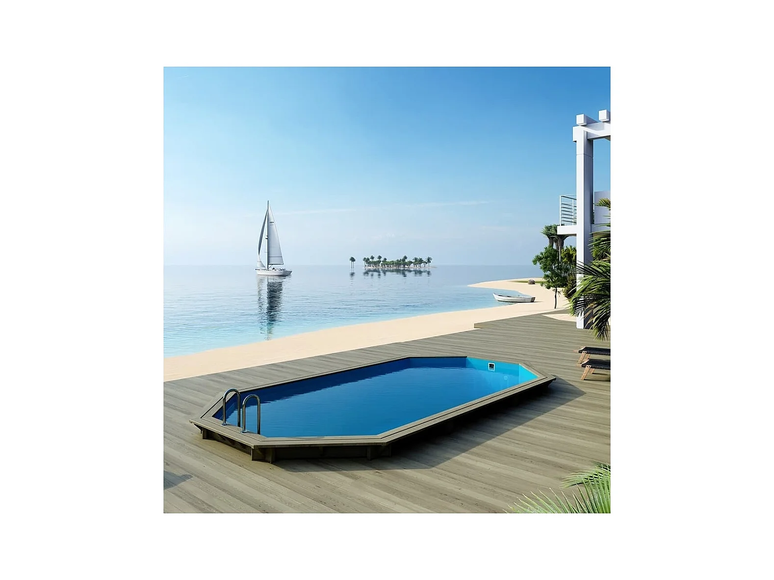 Piscine en bois Nemo 7.3x3.97 - H.1.45 m fixations à visser - BAS7305OSPL - ALTANKA
