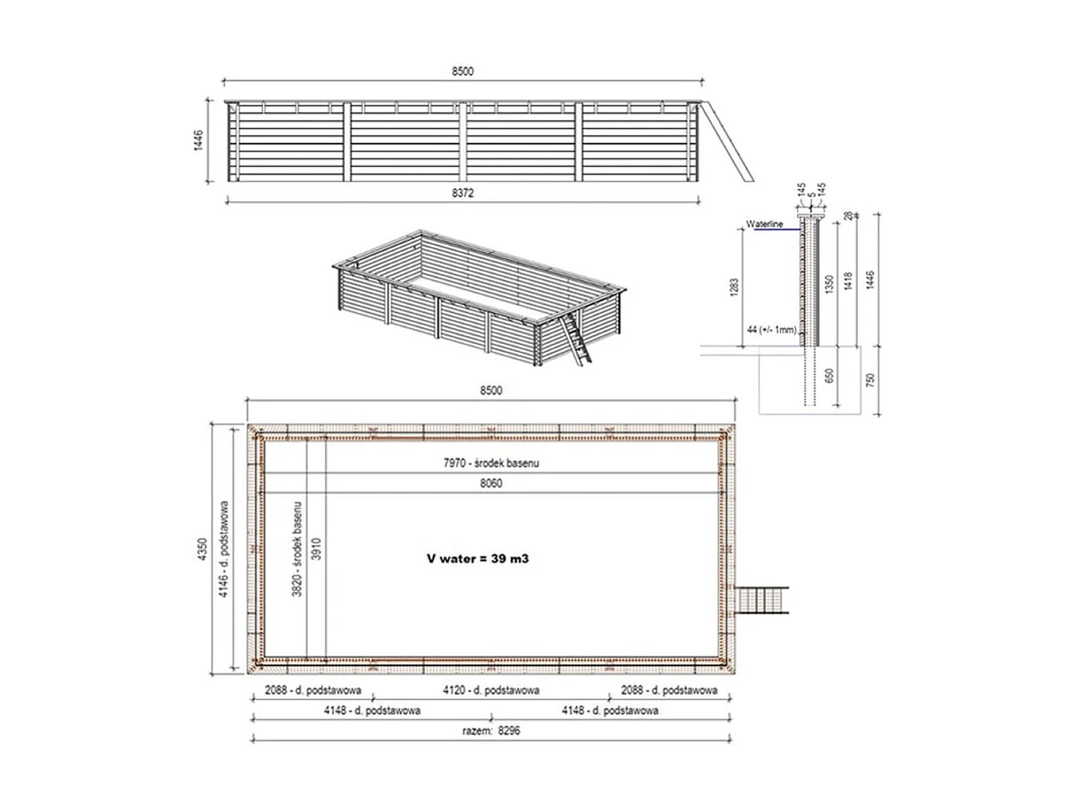 Piscine AQUA 8.5 x 4.35 - H.1.45 m, bleu pâle, fixations à sceller - BAS7309OSPI - ALTANKA